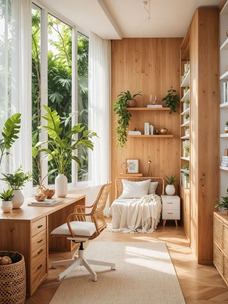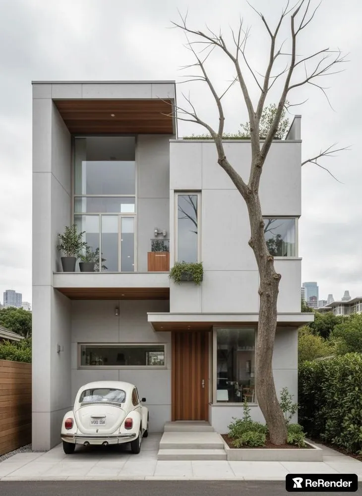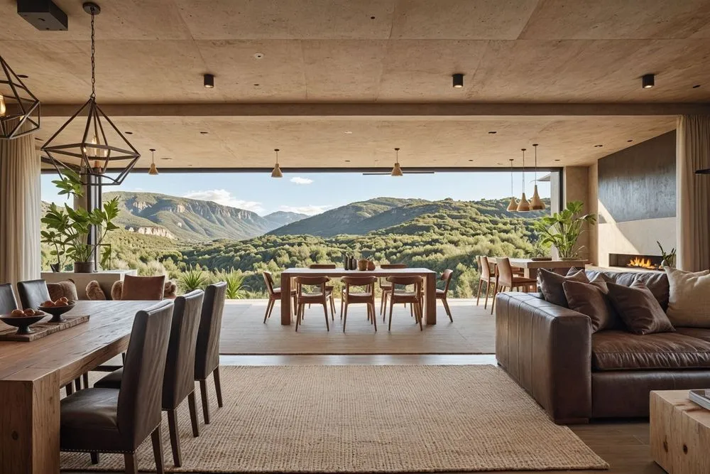 this modern home in the woods has a pool, rock garden and pond of lily pads