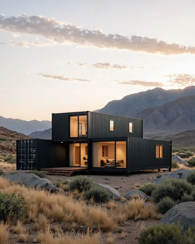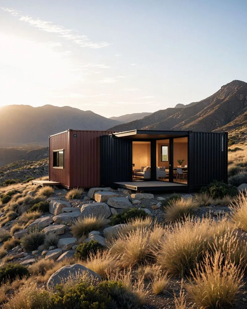 a house made from a container in the desert