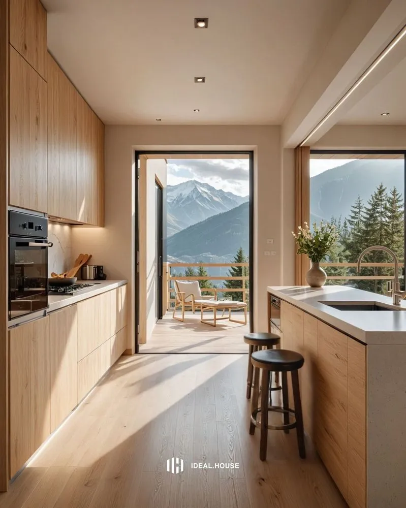 the open kitchen has a modern touch and great views
