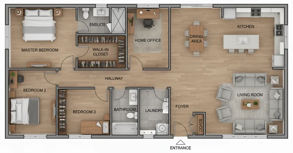 the floor plan for a three bedroom home with attached living area