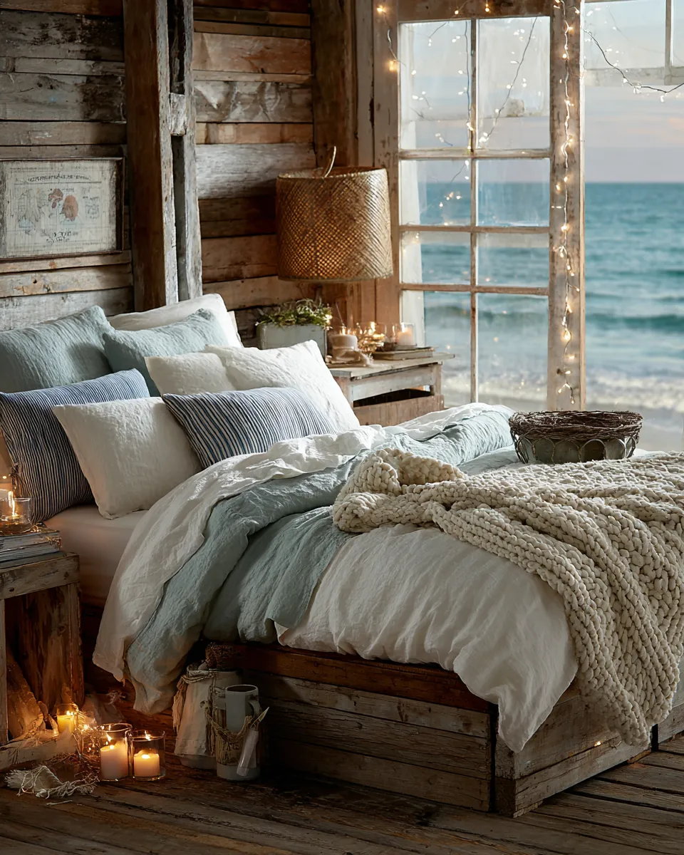 Drift off to sleep in your personal seaside paradise. Save this for your cozy coastal bedroom! #BeachHouseBedroomIdeas#BedroomIdeas#CozyCoastalIdeas#BedroomDecorIdeas#CoastalComfortIdeas#InteriorDesign#HomeDecor#BeachHouseStyle#SereneBedroom#DreamBedroom