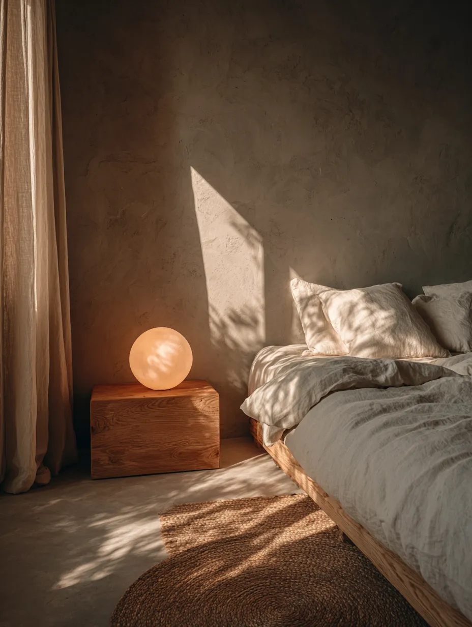 * **Natural Textures:** Think linen bedding, a soft wool rug, and natural wood furniture.