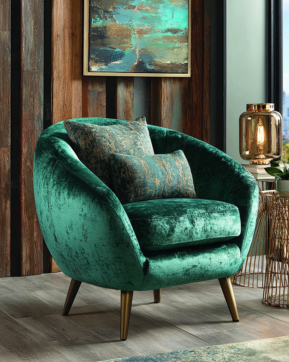 Emerald works wonderfully as an accent color. Imagine an emerald velvet accent chair that becomes the room's focal point, or smaller touches like cushions, artwork, or even a stunning lamp. It pairs exquisitely with gold, brass, and darker wood tones, creating a deeply inviting and elegant atmosphere. It's perfect for creating a refined sanctuary.