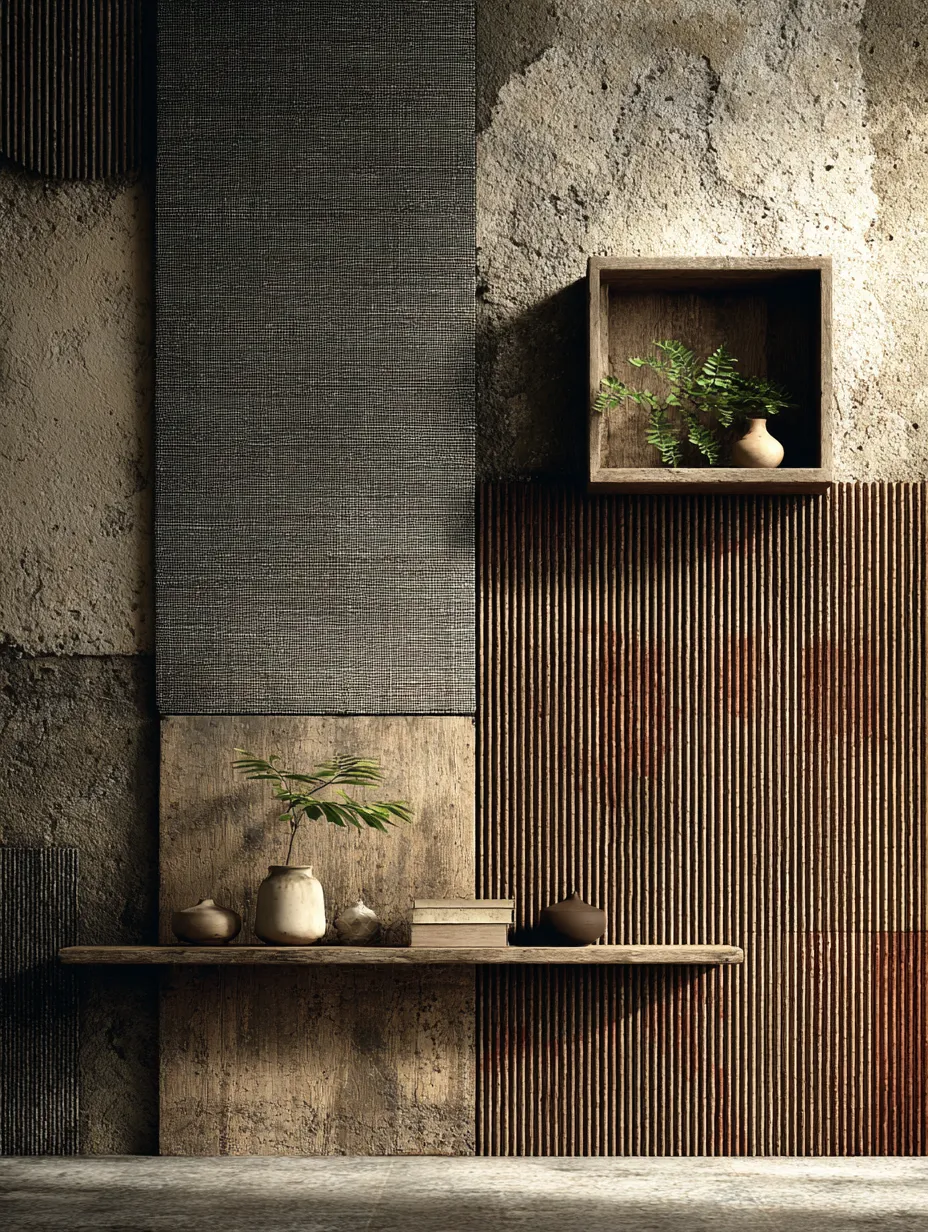 Elevate your interior design with a textured accent wall crafted from natural wood and woven materials! Imagine slatted wood panels paired with a woven rattan or grasscloth wallpaper section. This creates incredible depth, warmth, and an organic focal point. It’s a sophisticated way to bring the essence of 'Terra Firma' into your space. Perfect for living rooms, bedrooms, or dining areas. Embrace the beauty of raw, natural textures for a truly grounded feel! ✨