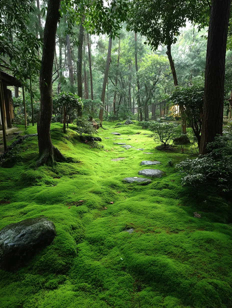 Moss gardens, or Kokedera, are a unique and profoundly peaceful aspect of Japanese landscape design. They are a celebration of texture, color, and quiet beauty. 🌳🍃