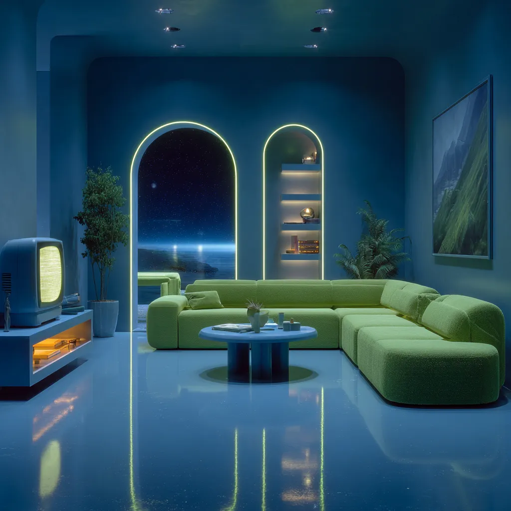 Dial it back to the 90s with a futuristic flair! Think bold, blocky shapes, playful colors, and a touch of optimistic futurism. We're talking about injecting elements like chunky furniture, neon accents, and graphic patterns that scream 'Clueless' or 'The Fresh Prince'. This is about creating a fun, nostalgic, and uniquely stylish space that feels both retro and forward-thinking. Ready for some serious 90s nostalgia? Save this post! 🌈📺