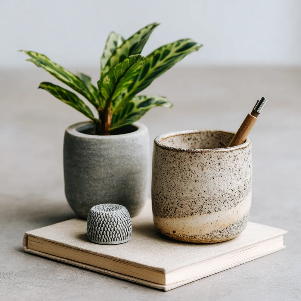 * **A Small Plant or Flowers:** A touch of green brings life and freshness.