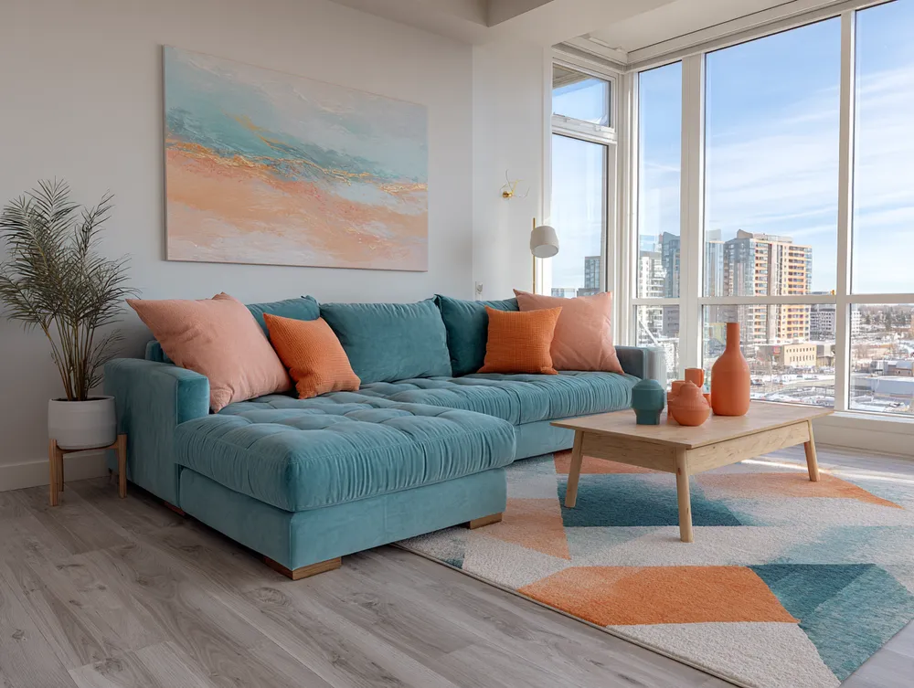 The Power of Coral & Teal: A Refreshing Living Room Combo! 🍹