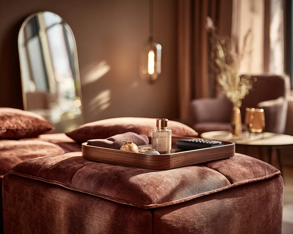 Velvet isn't limited to just sofas and chairs! Think outside the box for truly unique, opulent touches. 🌟 Consider a velvet bar cart for glamorous entertaining, velvet-covered storage boxes to organize in style, or even a velvet lampshade for a soft, diffused glow. It’s about adding that unexpected pop of luxury and texture to everyday items. Don’t shy away from using velvet in unexpected places to create a truly bespoke and rich environment. Save this for your creative decor ideas! 🍷