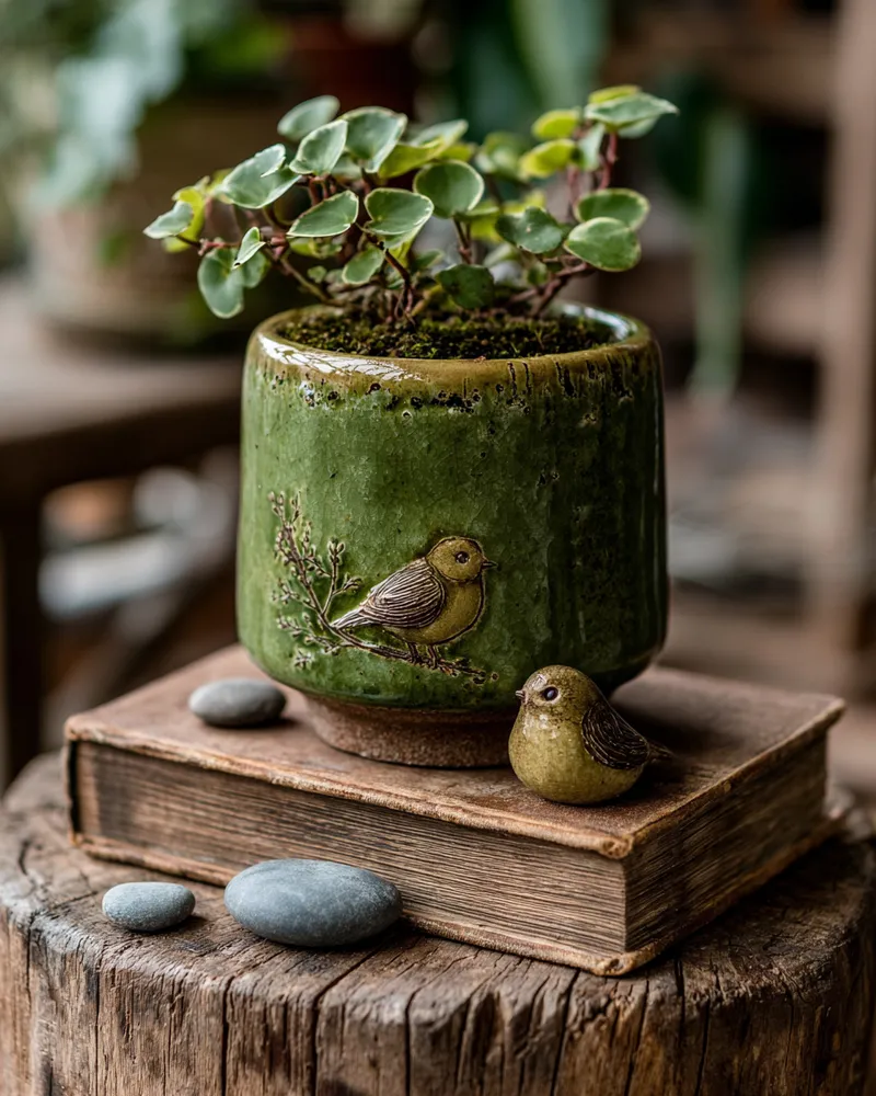 This planter is transformed into a whimsical landscape with a miniature tree, flowering plants, succulents, and charming little accessories. Here're some of my takeaways: --When designing your miniature garden, consider the scale of your plants and accessories. --Choose plants that stay small and complement each other in color and texture. --Add tiny pathways, benches, or even a miniature pond to create a truly enchanting scene.
