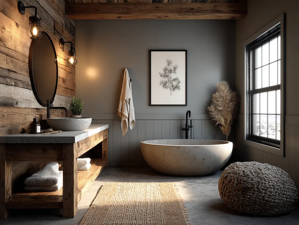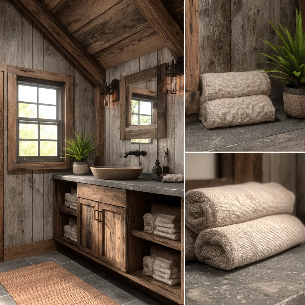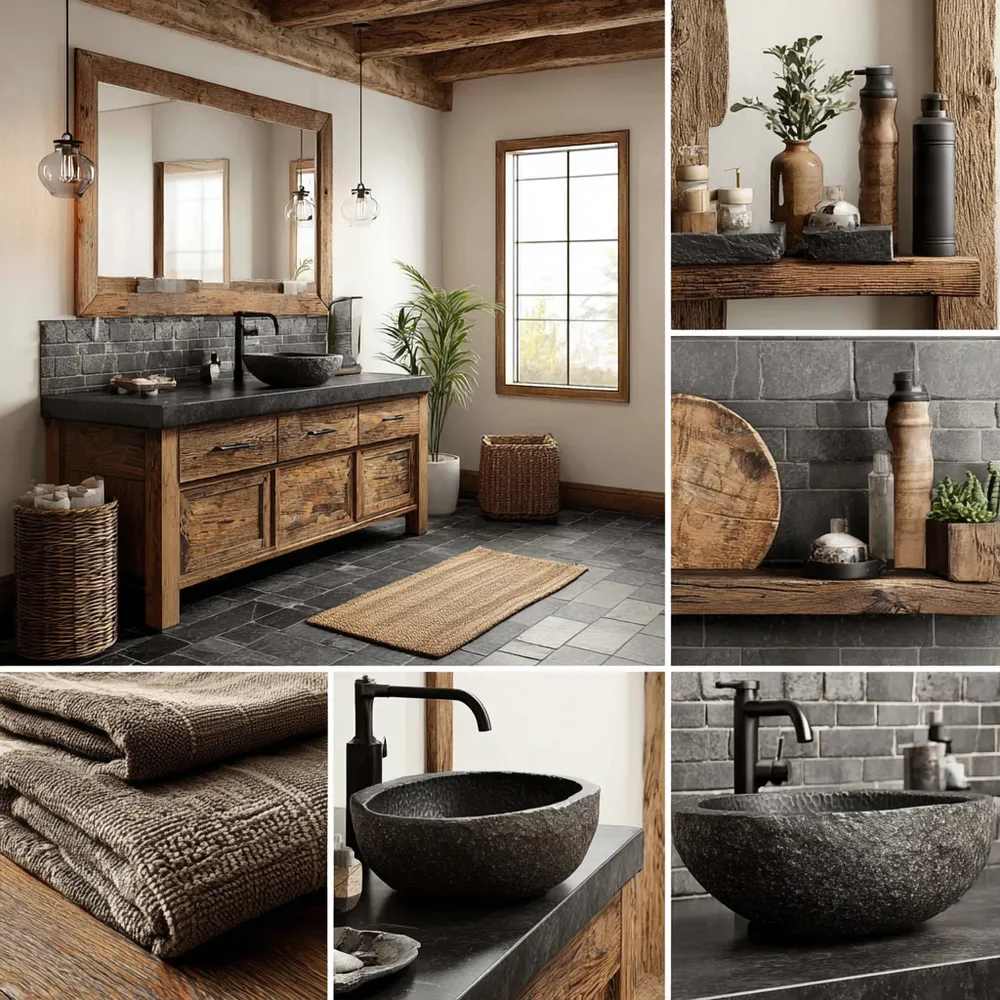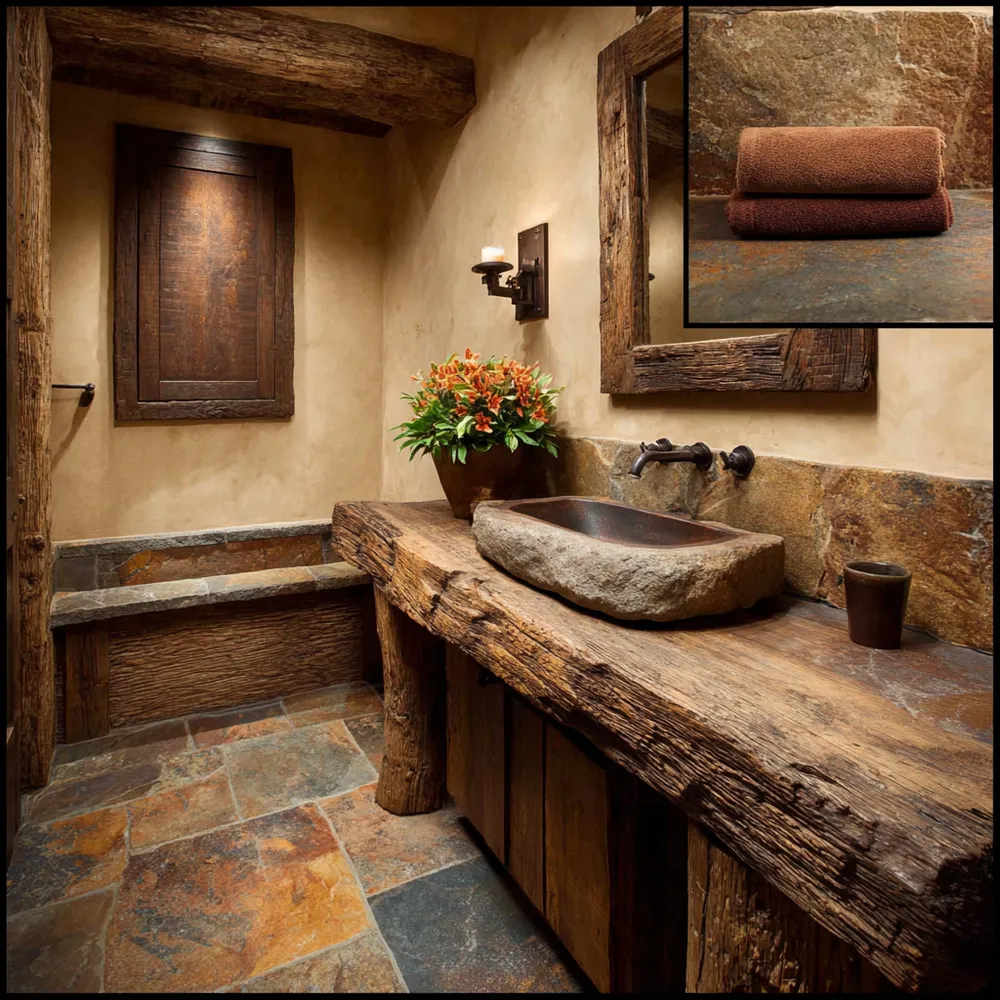 🪵 Embrace Natural Textures: Rustic Bathroom Design 🪵