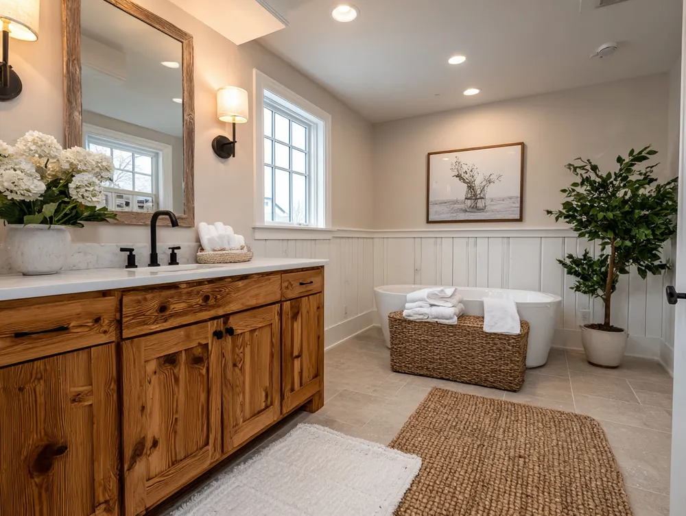 Farmhouse Chic Bathroom Refresh: Rustic Charm Meets Modern Comfort 💧