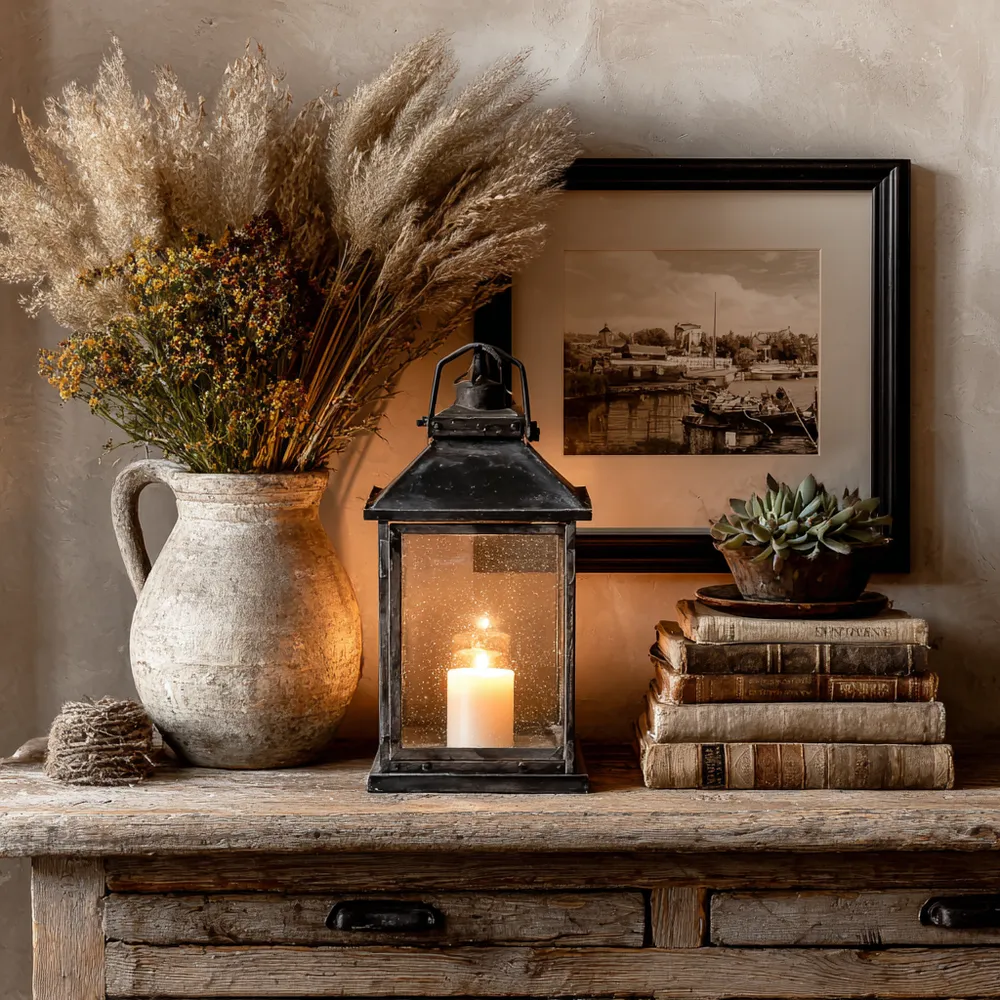 Sometimes, the smallest corners of your home can have the biggest impact! I love creating 'farmhouse vignettes' – small, curated arrangements that add personality and warmth. They're like little stories in a corner. ✨ How to create your own vignette: * **Choose a Spot:** A bookshelf, console table, or even a window sill. * **Anchor Piece:** Start with something substantial like a lantern, a pitcher, or a rustic sign. * **Vary Heights & Textures:** Mix in smaller objects, books, or plants. * **Add a Personal Touch:** Incorporate a framed photo or a collected item. * **Consider Flow:** Ensure it feels cohesive and visually pleasing. What’s your favorite spot to style? Share below! 👇