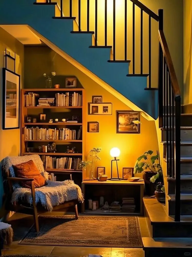 My favorite spot in the house? This eco-conscious reading nook! It's proof that you can create a warm, inviting corner using sustainable materials and thoughtful design. It’s all about comfort, natural textures, and a little bit of hygge! Elements I love: * A comfy armchair made with natural upholstery (linen, wool). * A side table from reclaimed wood or bamboo. * A soft, textured rug underfoot. * Good, warm lighting from a floor lamp. * Lots of books and a cozy throw! I designed this space to be my personal escape, filled with items that feel good and do good. Save this for your own nook inspiration! 💖