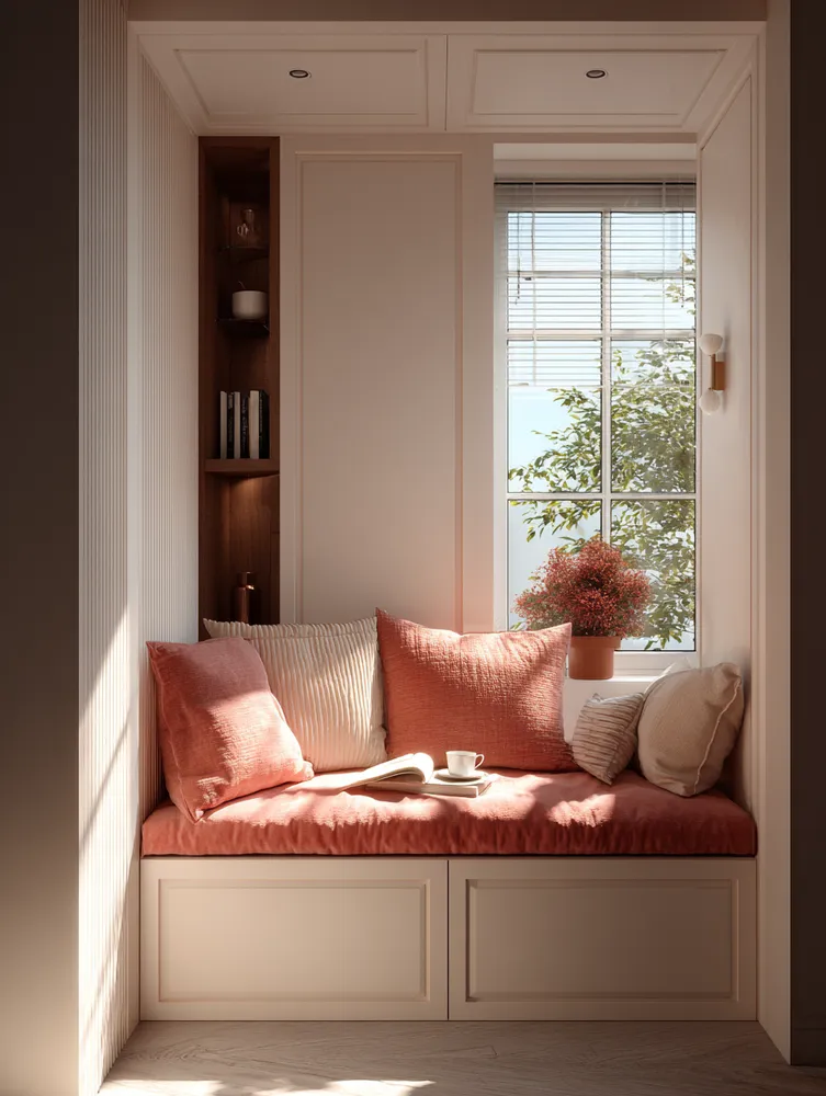 Chasing that perfect cozy corner? My window seat nook is where it's at! ☀️ It's the ultimate spot for soaking up natural light and a good book. I love designing these small spaces to feel both inviting and serene. 🌿 Think plush cushions, soft throws, and a quiet spot to just *be*. It’s amazing how much joy can be found in a simple, sun-drenched nook. This is my favorite escape, a little slice of peaceful heaven. Save this for your charming nook inspiration!