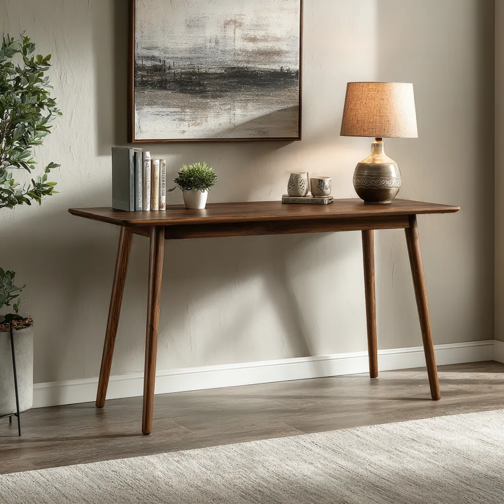A Mid-Century Modern console table is more than just furniture; it's a statement. These pieces, often crafted from rich woods like walnut or teak, offer sleek lines and functional surfaces. 🤩 Use them in entryways, living rooms, or bedrooms to display art, plants, or books. Their tapered legs and minimalist design add timeless elegance without overwhelming the space. How do you style your console table?