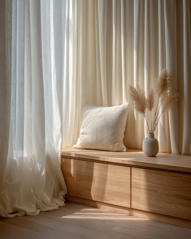 Your entryway bench is more than just a place to sit; it's a structural statement that sets the tone for your home. In Japandi design, opt for benches with clean, architectural lines and natural wood finishes. Think solid wood slabs or frames with minimal ornamentation. The bench should feel grounded yet airy, an elegant transition space. Consider integrated storage for a functional touch, or simply let its form speak for itself. How do you make your entryways welcoming?