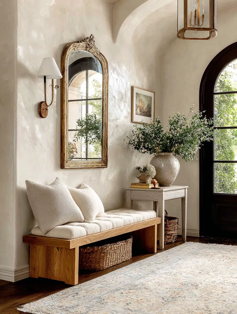 Monochromatic Styling for Entryway Benches: Welcome in Style 🤍