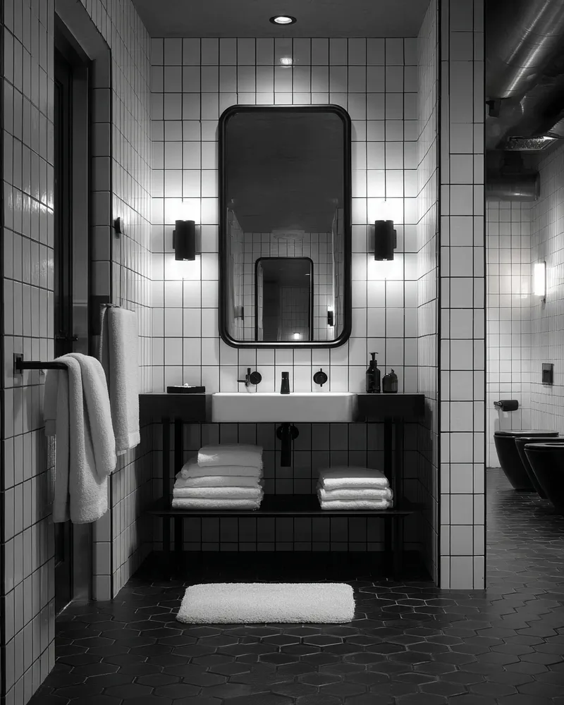 Monochrome Bathroom Goals: Clean Lines, Chic Tones 🖤🤍
