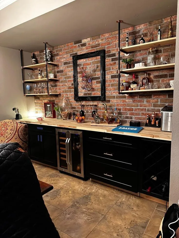 If you're looking to transform your living space into a cozy entertaining hub, check out these amazing home bar ideas! Brick bars add an industrial chic vibe, perfect for those who love modern yet rustic aesthetics. The texture and warmth of brick can instantly elevate any room. For a more countryside retreat feel, a log cabin bar design brings the charm of a mountainous getaway right into your home. The natural wood elements create a welcoming atmosphere. Mix and match styles to create your dream home bar where memories will be made! 🍻