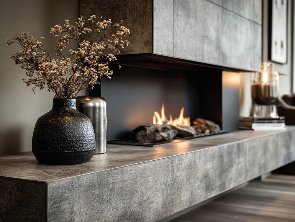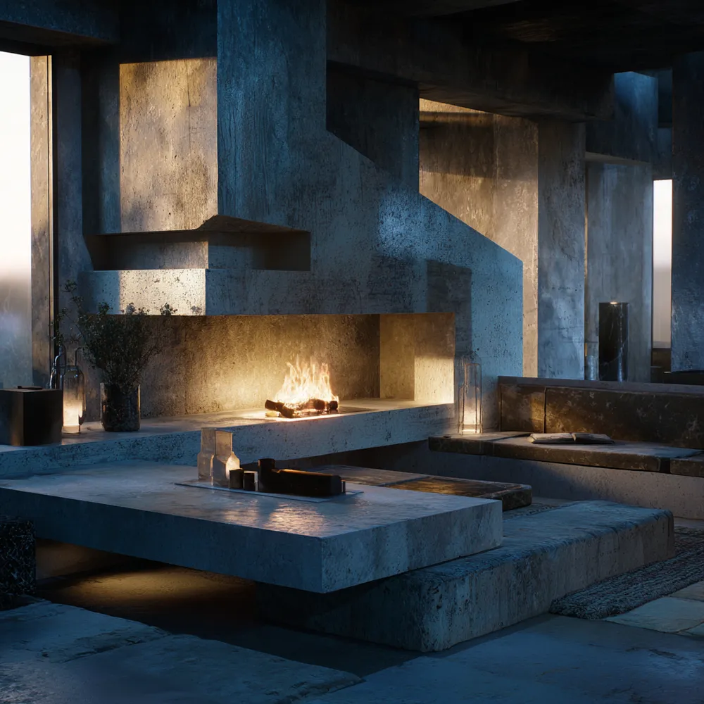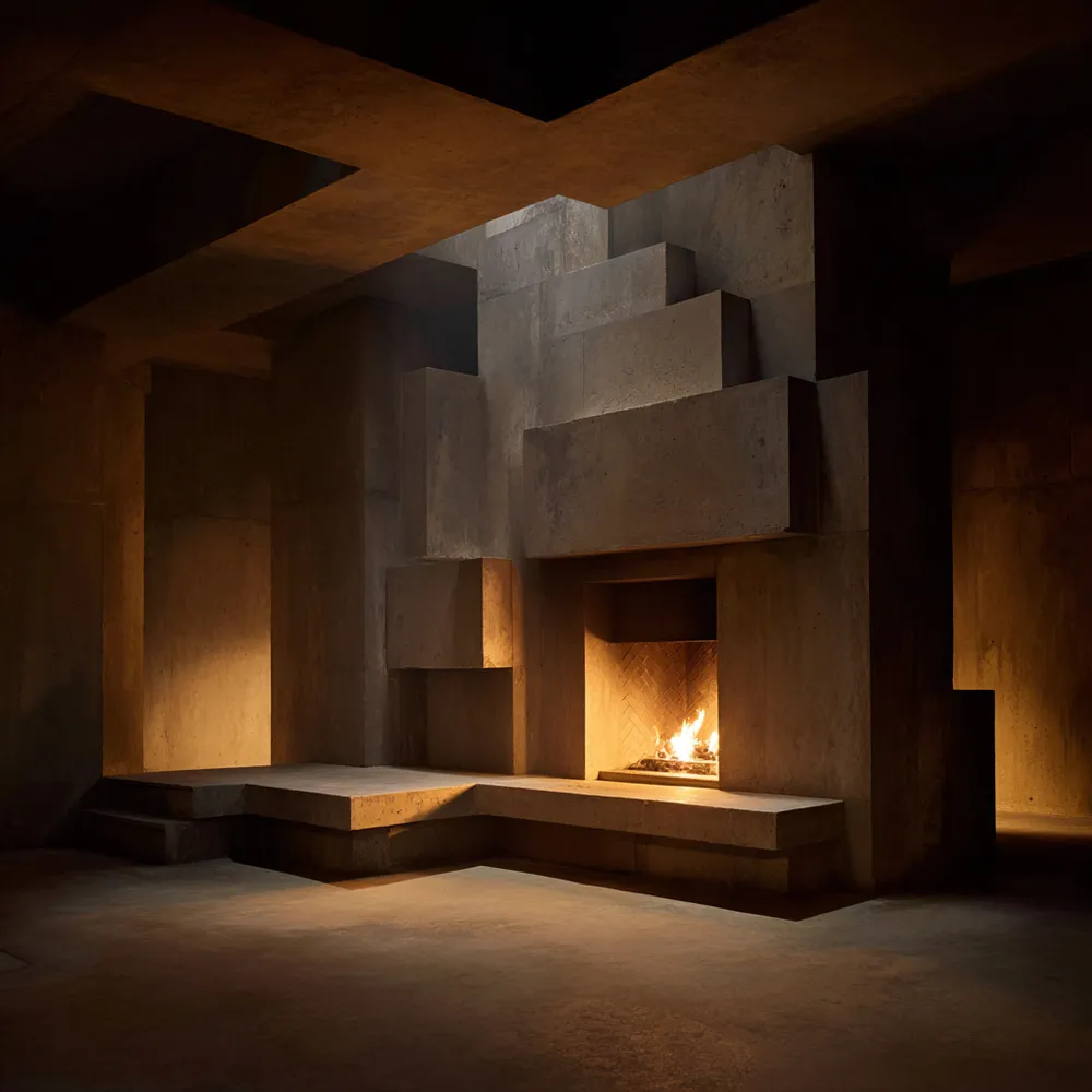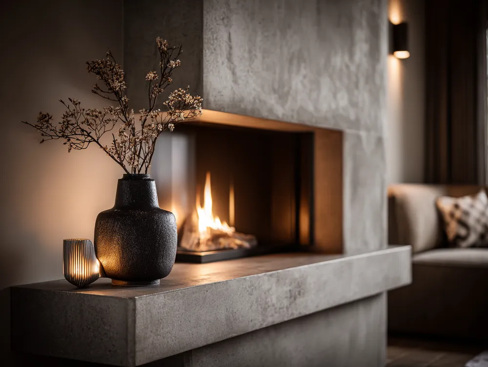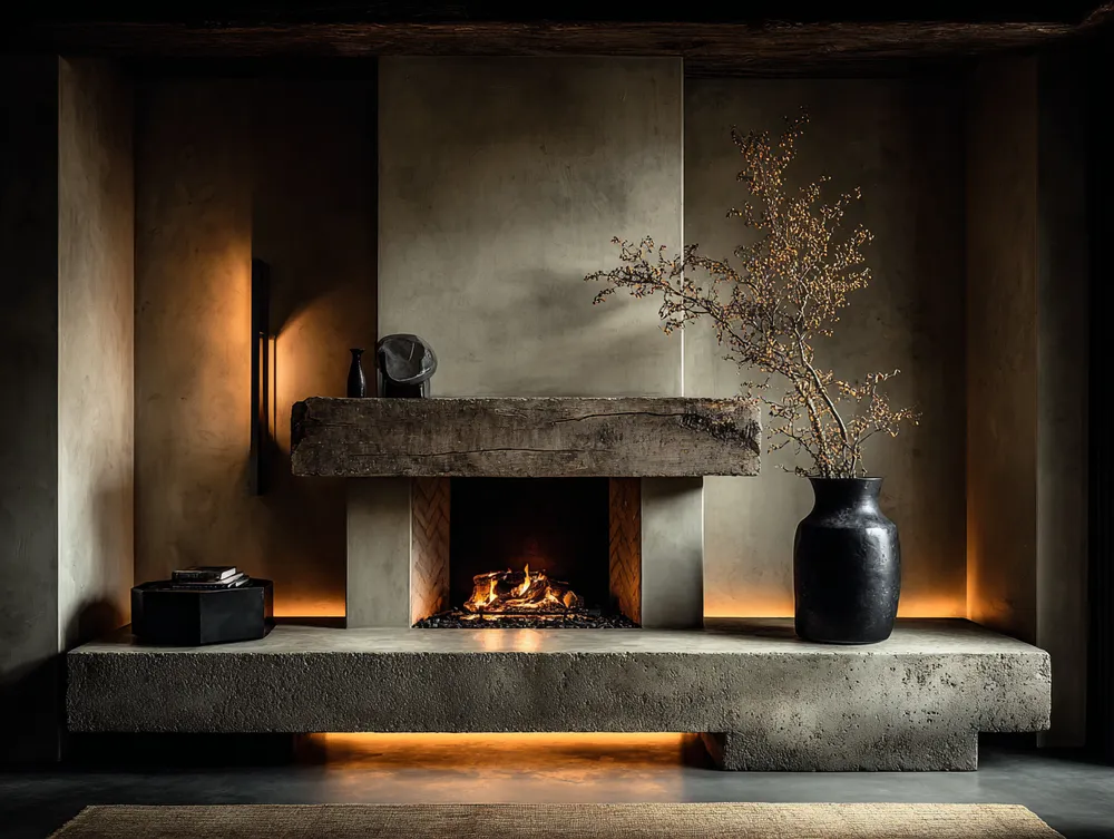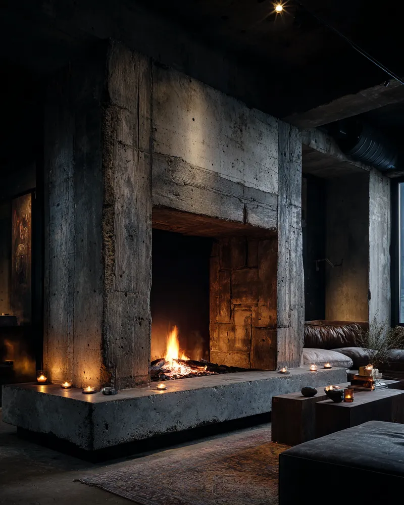 Think minimalist hearth meets industrial chic! A concrete fireplace brings unmatched durability and heat resistance for year-round coziness.🌡️🏡