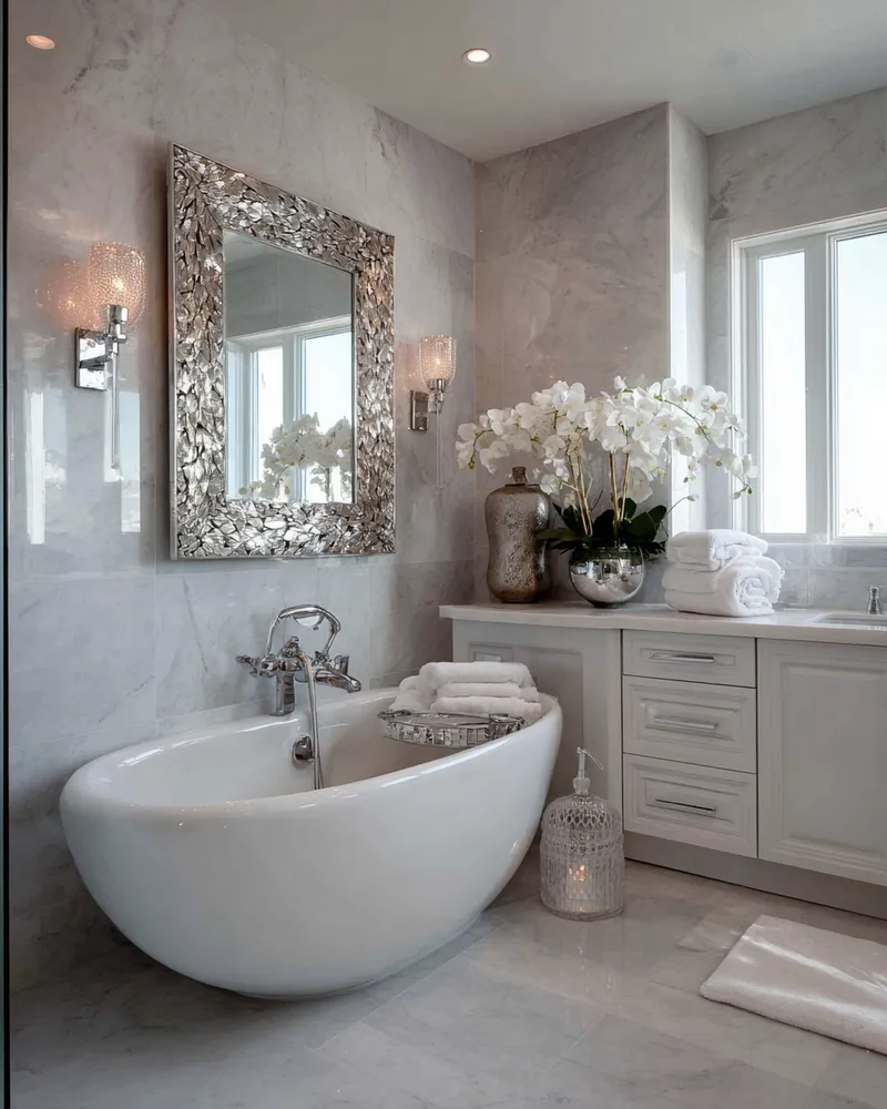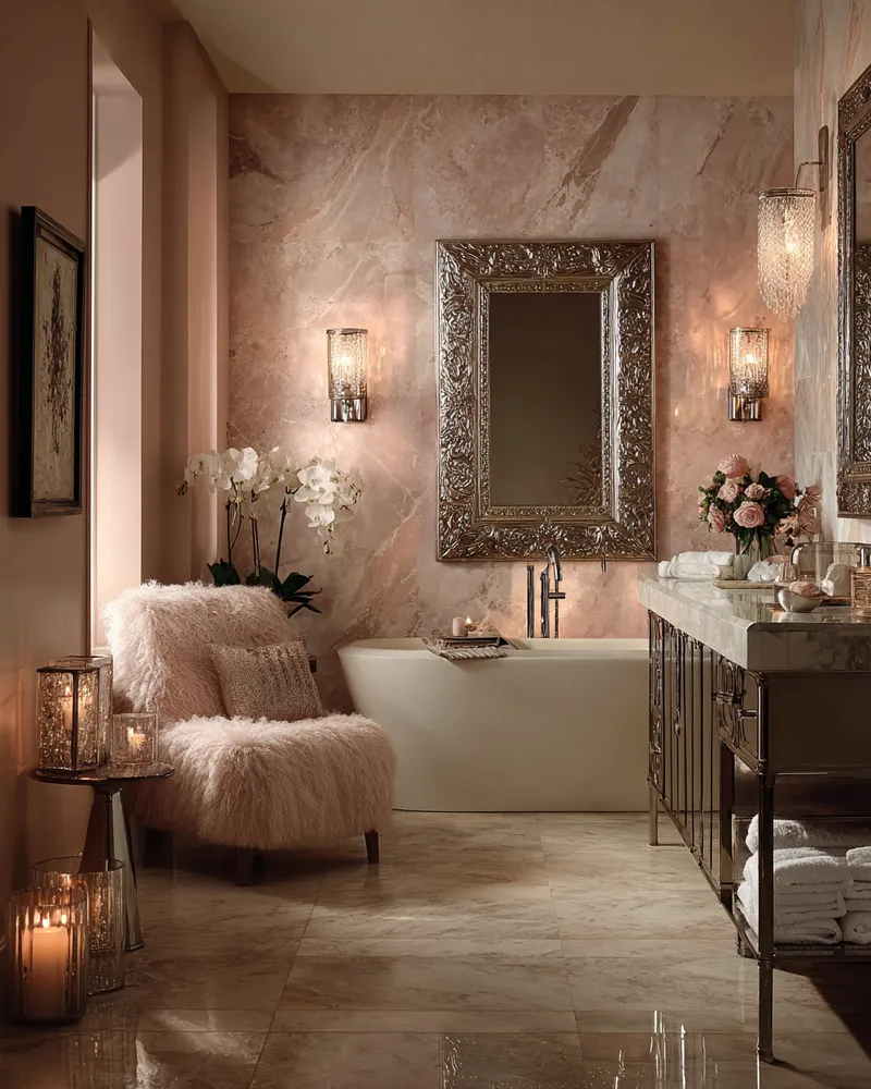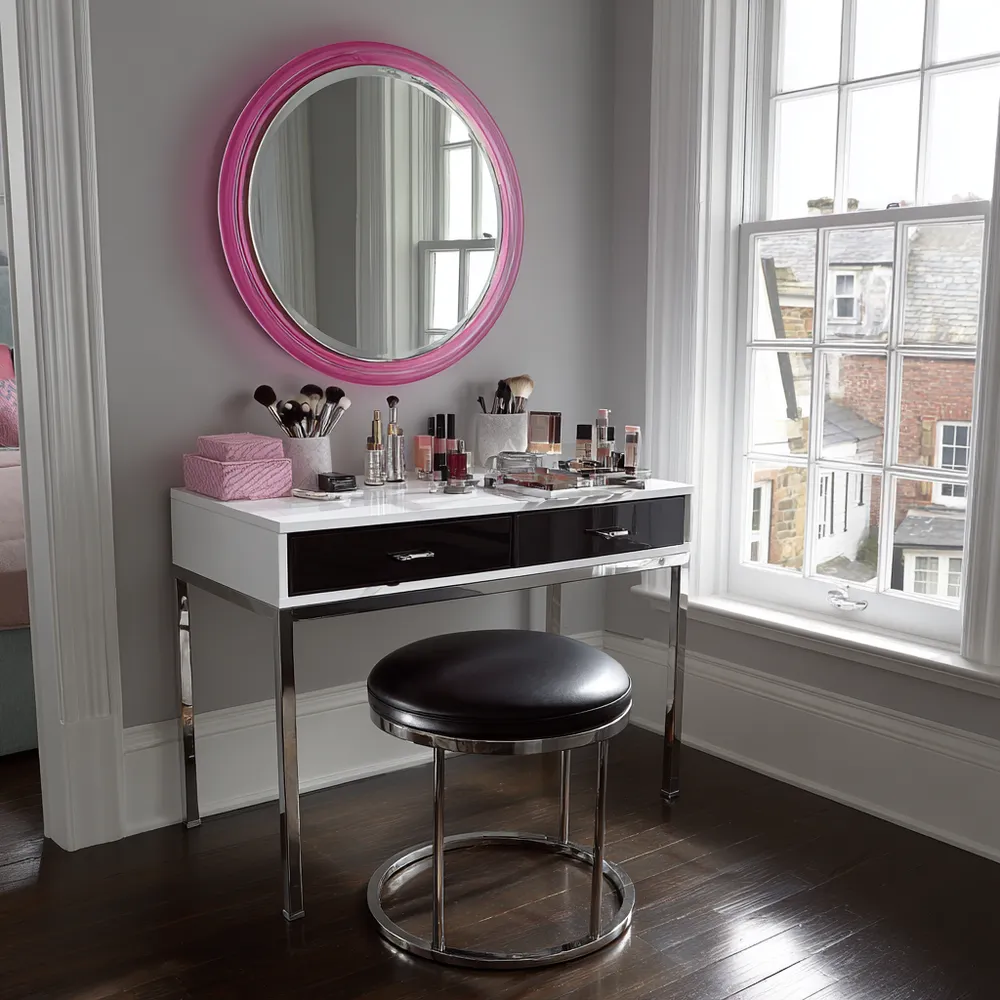Create your own makeup station with a sleek dressing table and decorative mirror for the ultimate beauty nook ✨