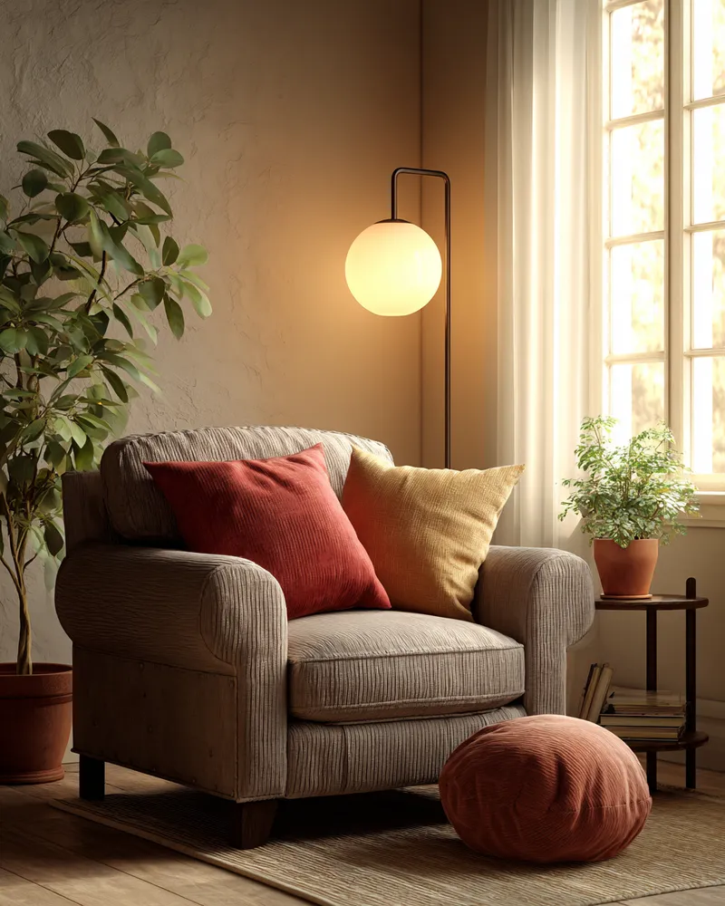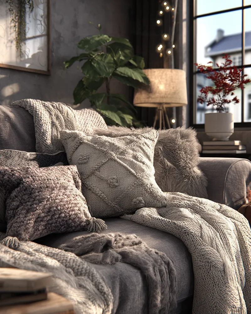 – Add storage ottomans, throw pillows & slipcovers for comfort & style
