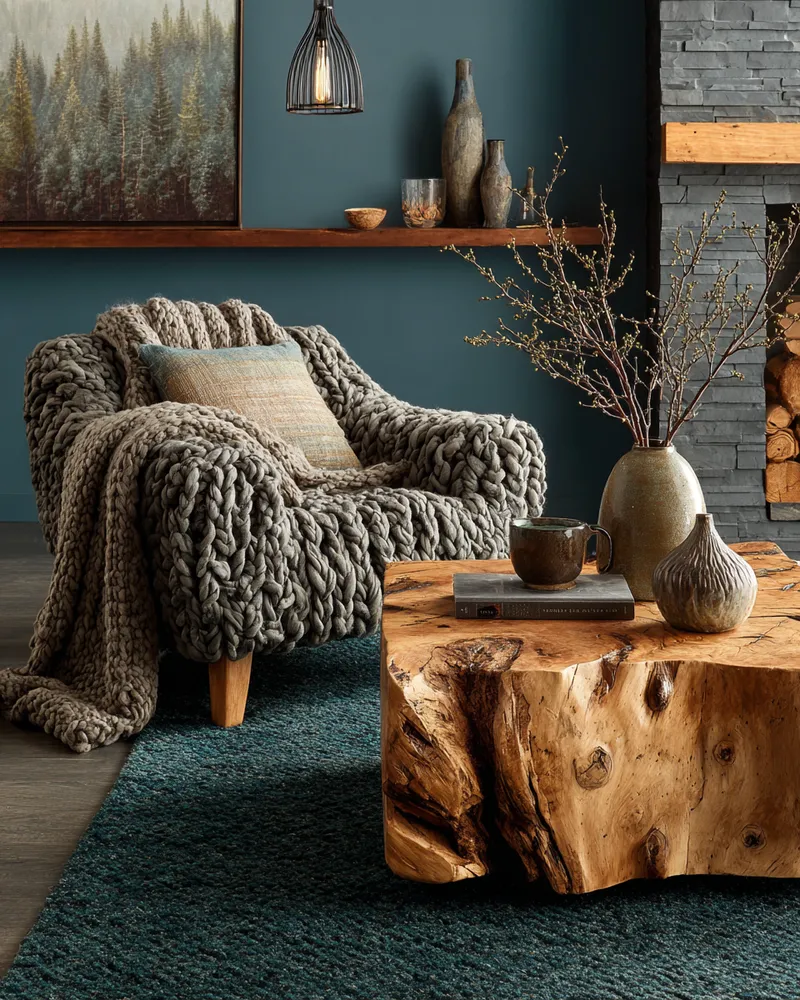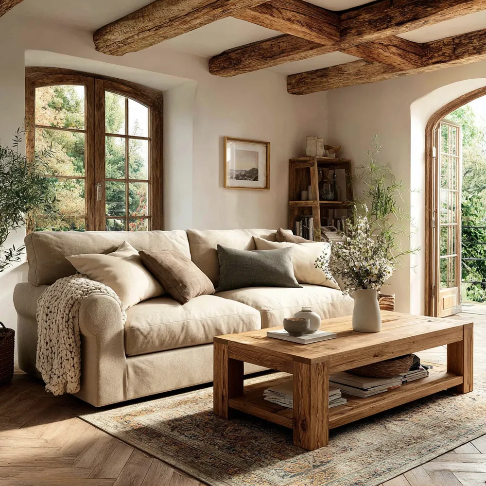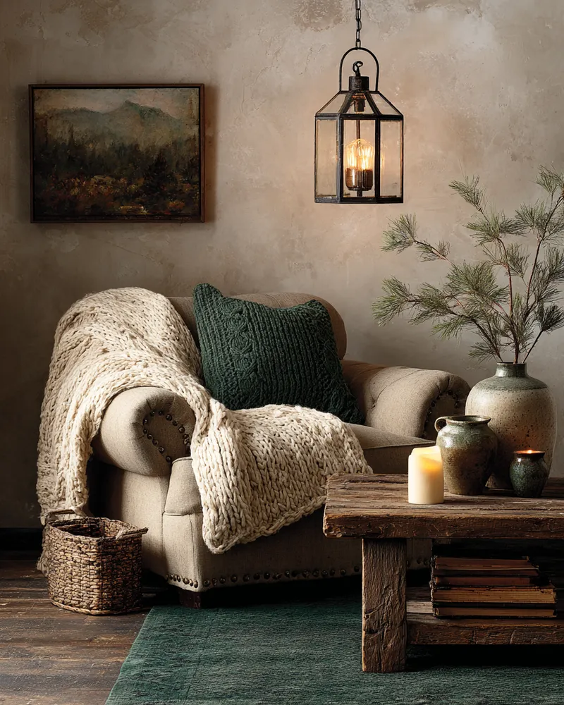 Warm Woods & Cozy Textures: The Rustic Living Room ✨