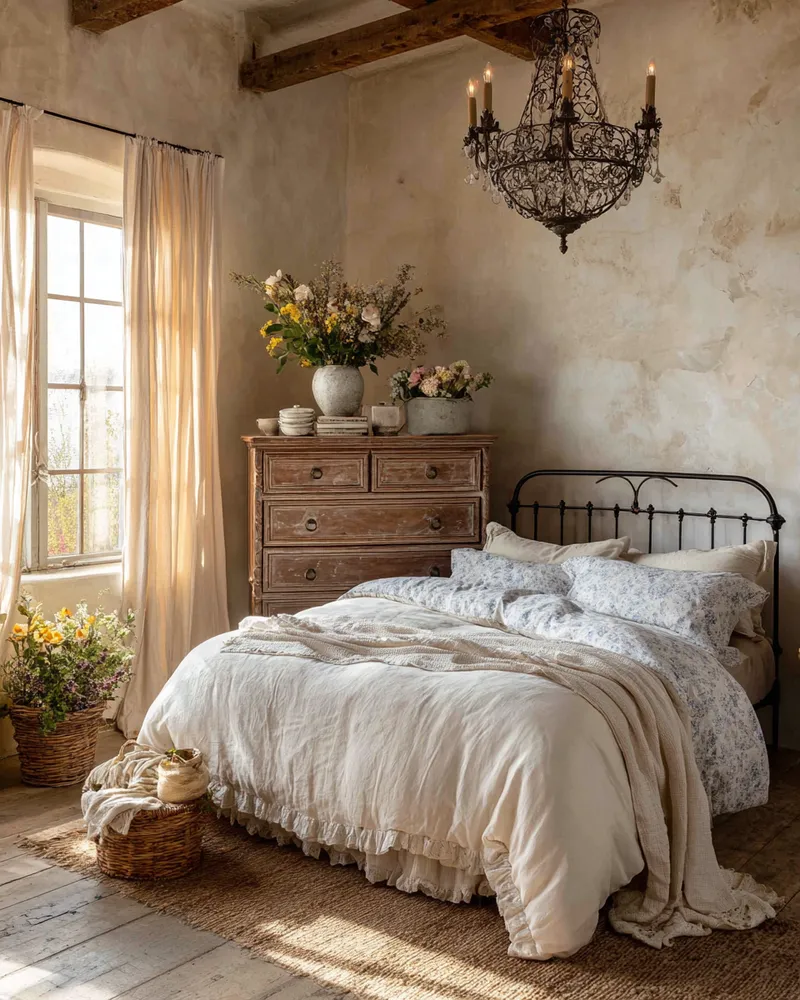 French Country Charm: Designing a Cozy Farmhouse Bedroom 🌸