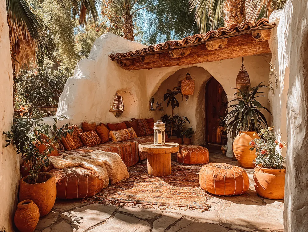 Boho Chic Outdoor Lounge: Terracotta Seating & Decor 🪴☀️