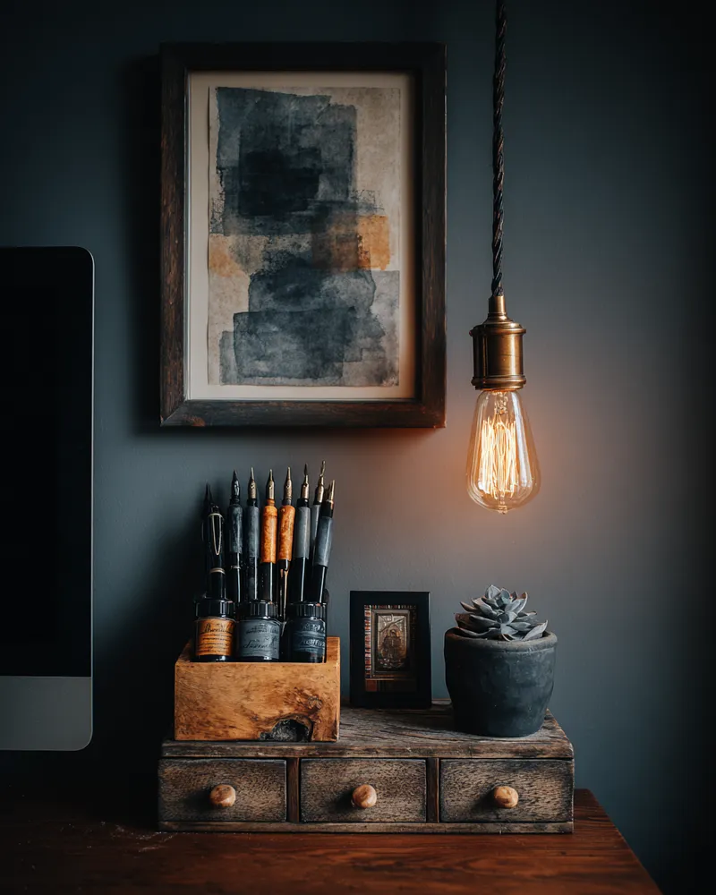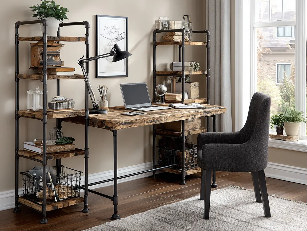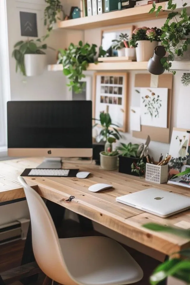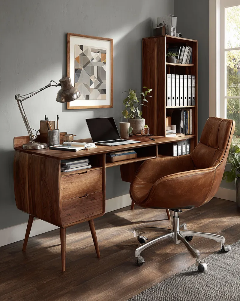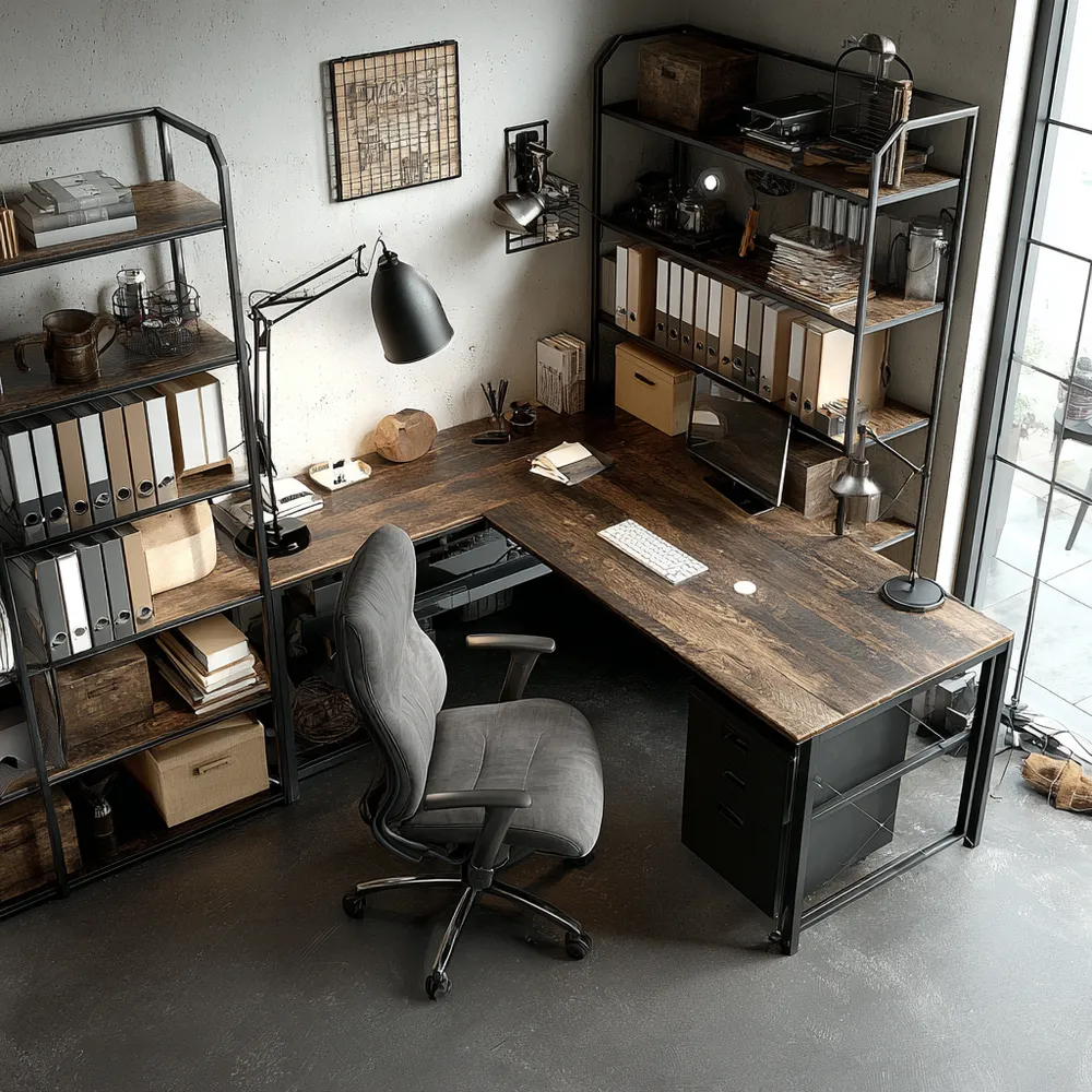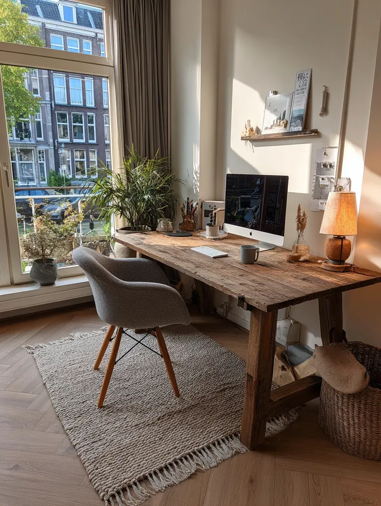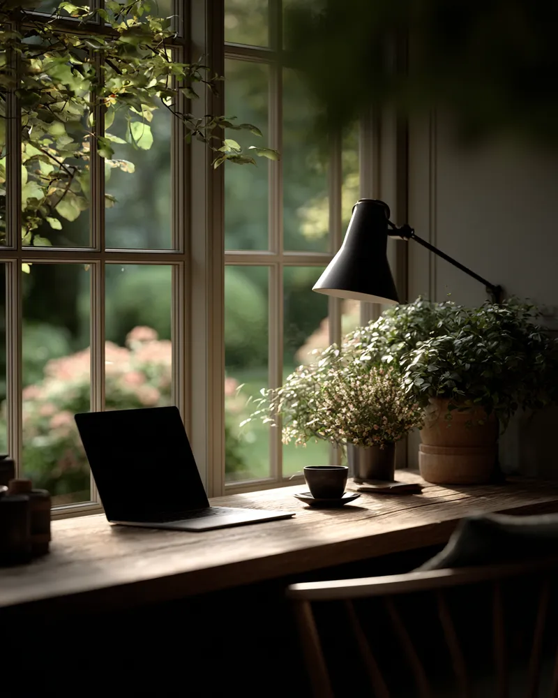 תיצור לי . חדר עבודה במידות 2.20×3.20 על פי התמונה שהעלתי שיהיה בו שני כורסאות שולחן ארונית למדפים ומדפים או קלאפה עם מנורה מעוצבת שטיח עציץ בגוונים רגועים צריכה שיהיה ארון של שני דלתות גבוה