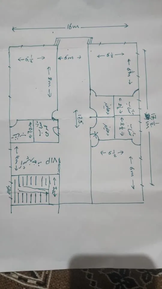 سه اطاق ۱ صالون سه تشناب برای اطاق ها یک تشناب عمومی برای دهلیز یک آشپزخانه فی آی فی یک رای زینه برای منزل دوم