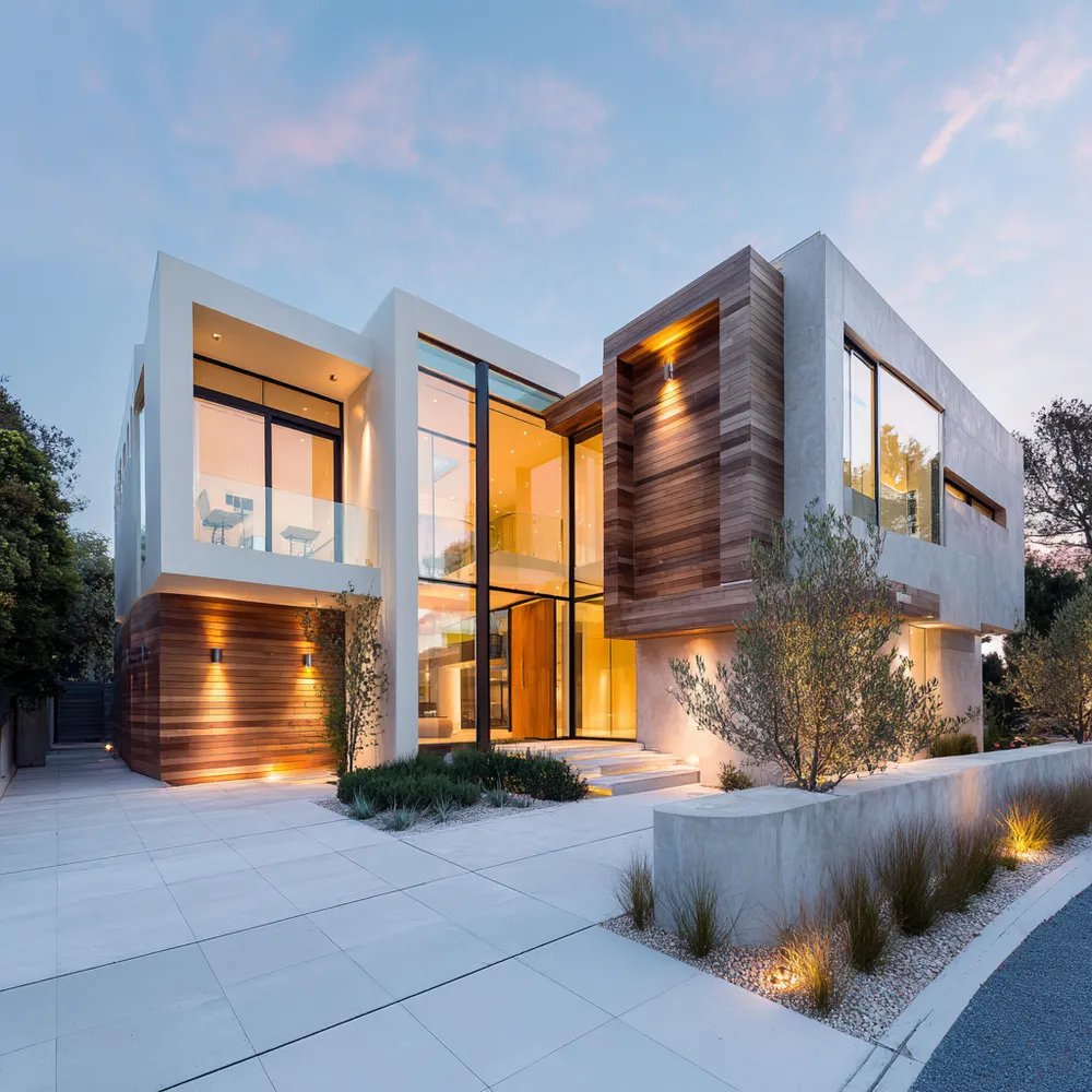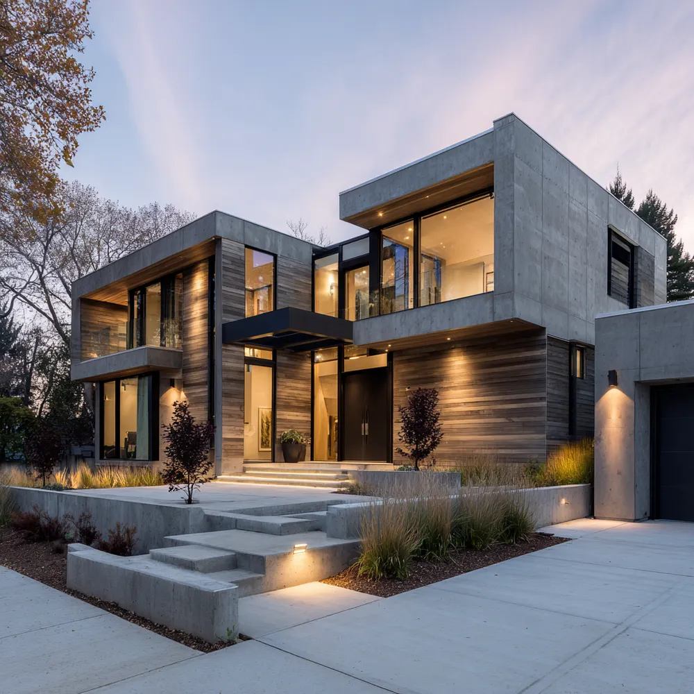 Step into the now with the stunning contemporary house exterior! This forward-thinking style is all about celebrating clean lines, innovative materials, and a strong connection to the surrounding landscape. It's the ultimate expression of modern sophistication and minimalist elegance. The hallmark of a contemporary exterior is its bold use of geometric shapes. Think strong horizontal and vertical lines, flat or low-pitched roofs, and an uncluttered, sleek silhouette. Ornamentation is kept to a minimum, allowing the home's form and materials to take center stage. A key feature is the dynamic interplay of different materials. You'll often see a beautiful combination of natural wood siding, smooth concrete, sleek metal panels, and vast expanses of glass. This mix of textures adds depth and visual interest to the minimalist design. Large, strategically placed windows are non-negotiable. Floor-to-ceiling glass walls and oversized windows not only flood the interior with natural light but also blur the boundaries between indoors and out, creating a seamless living experience.
