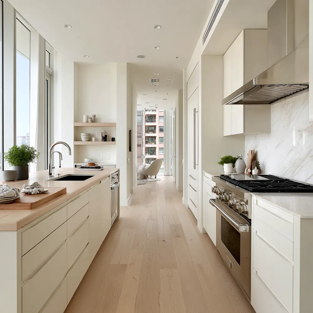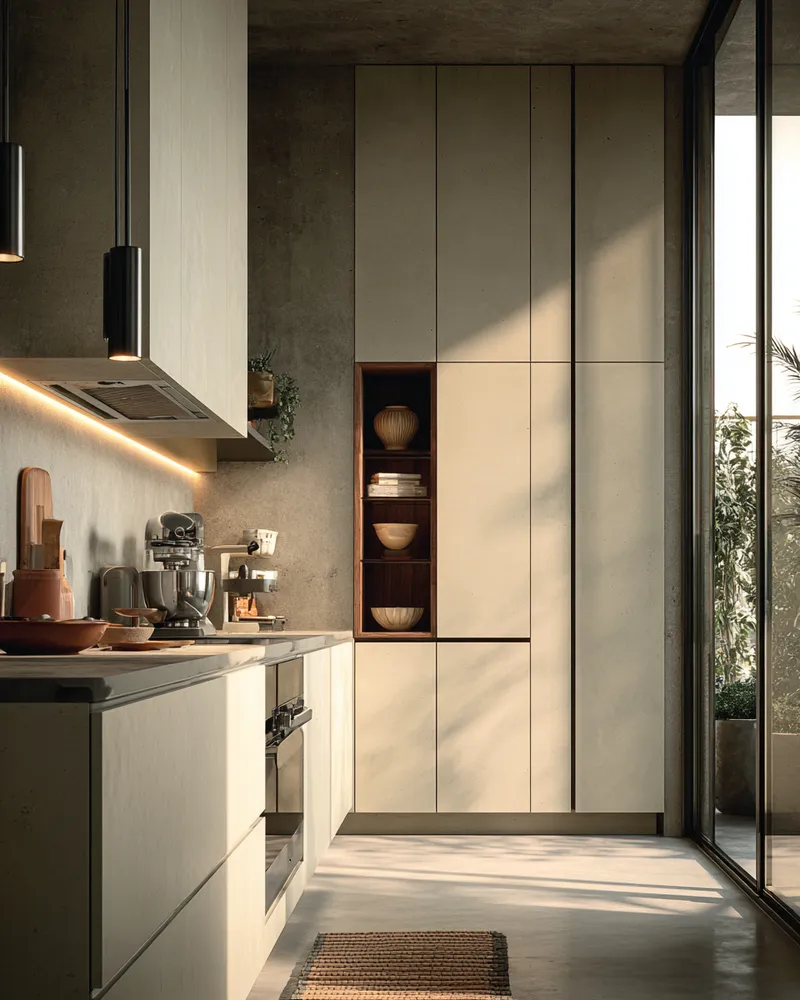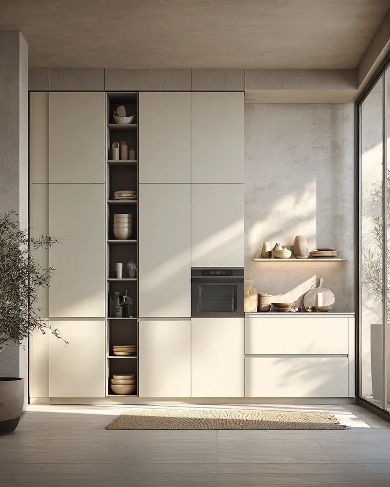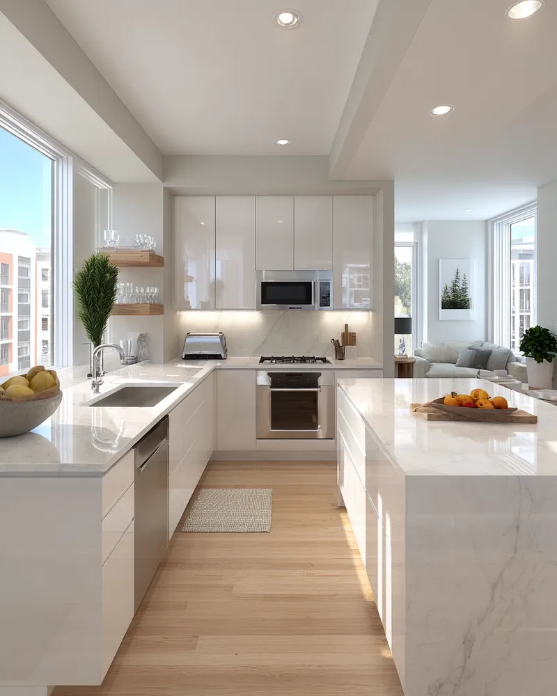 Achieve serenity and functionality in your urban kitchen with minimalist design principles. 🌸 It’s about clean lines, smart storage, and an uncluttered aesthetic. Key to a minimalist kitchen: - **Sleek Cabinetry:** Handleless doors for a seamless look. - **Integrated Appliances:** For a smooth, uninterrupted design. - **Monochromatic or Neutral Palette:** Soft whites, greys, or natural wood. - **Strategic Open Shelving:** Displaying curated items. Create a calming and efficient culinary space. Save for your kitchen inspo! ✨