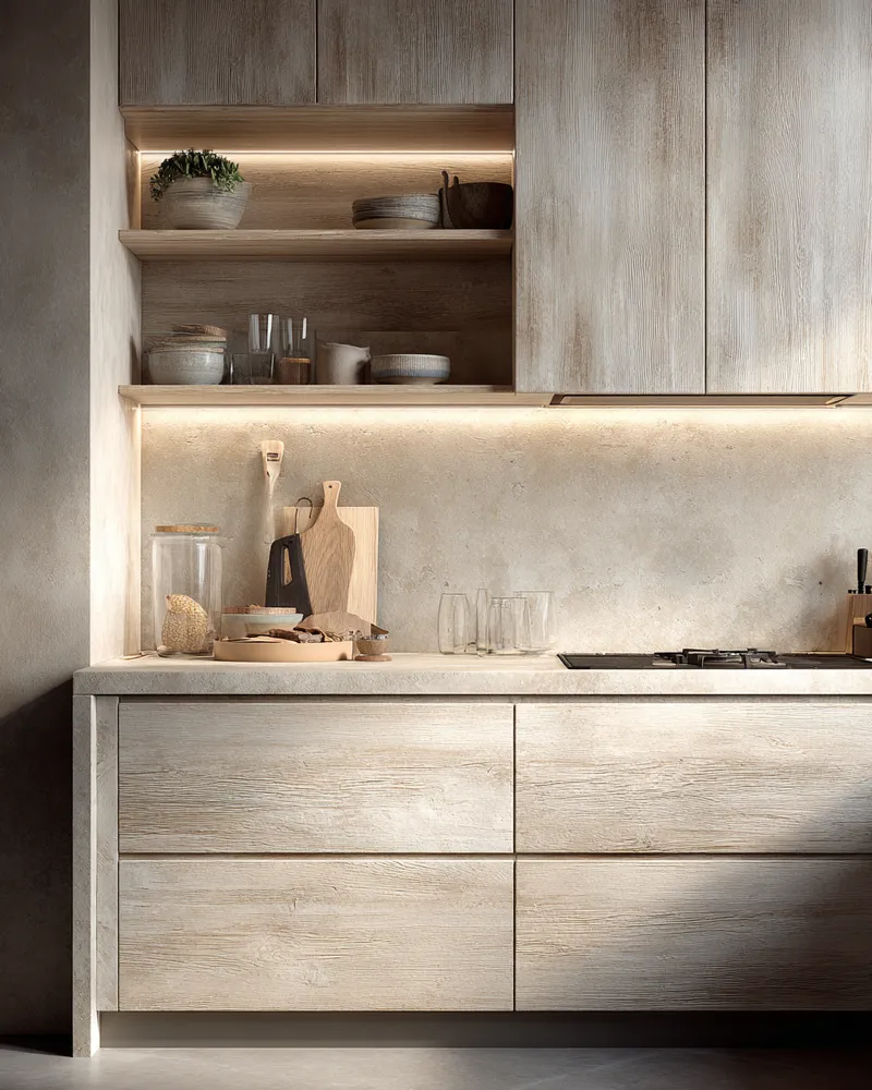 Natural Wood Details for a Chic and Minimalist Kitchen 🤍