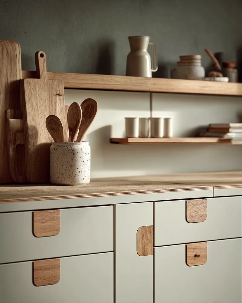 Minimalism thrives on clean lines and natural materials. As 'The Wood Whisperer,' I love how wood details bring understated chic to minimalist kitchens. ✨ **Wooden Drawer Pulls/Knobs:** Simple wood hardware can add warmth to sleek cabinetry. ✨ **Floating Wood Shelves:** For displaying curated items and adding subtle texture. ✨ **Wooden Cutting Boards as Decor:** Functional art pieces that add organic charm. ✨ **Light Wood Cabinetry:** Blonde wood cabinets create an airy, sophisticated feel. ✨ **Wooden Spoon/Utensil Holder:** Practical and adds a touch of natural warmth. Achieve a stylishly minimalist kitchen with these thoughtful wood accents. Save this for your kitchen refresh!