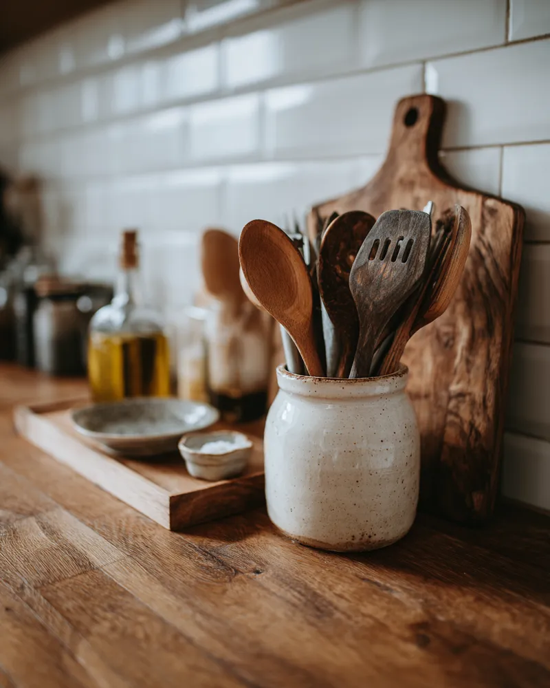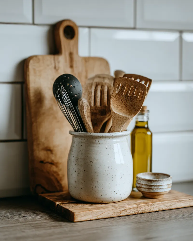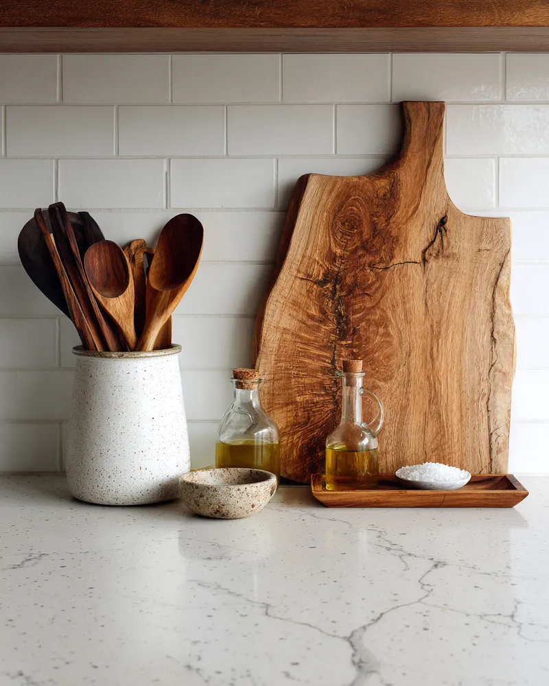 A clutter-free kitchen countertop isn't just aesthetically pleasing; it promotes a sense of calm and efficiency. As a collector, I believe in 'less but better' even in the kitchen. Instead of a myriad of gadgets, select a few beautiful, functional pieces. Think a gorgeous ceramic utensil crock filled with your most-used tools, a sleek wooden cutting board leaning against the backsplash, and perhaps a small tray holding artisanal olive oil and salt. Allowing breathing room makes the space feel expansive and highlights the quality of each carefully chosen item. ✨ This mindful approach enhances the joy of cooking.