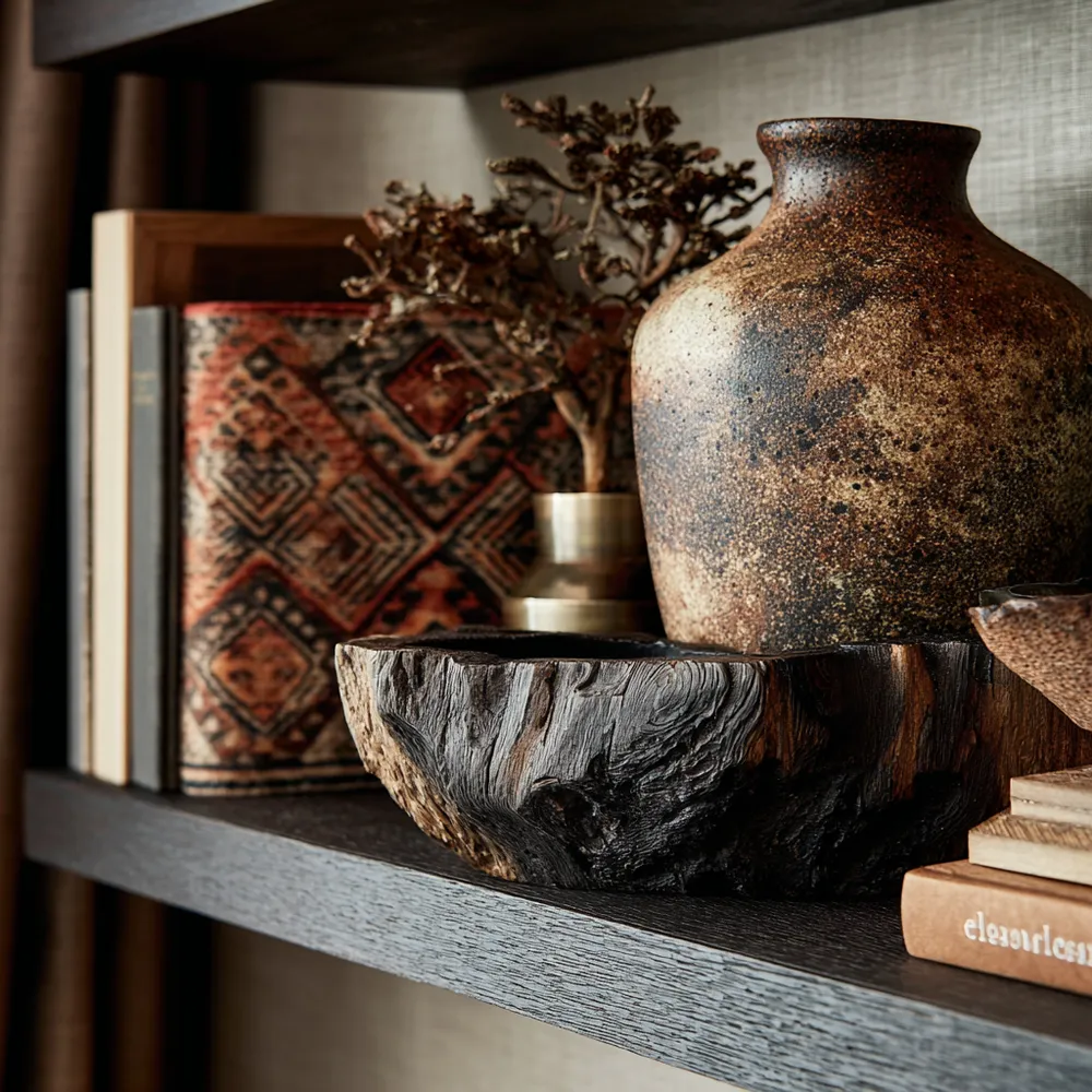 Elevate your space with 'Eclectic Ecologies' by infusing it with artisanal accents that tell a story. Look for unique, handmade pieces: a hand-thrown ceramic vase with an earthy glaze, a carved wooden bowl from your travels, or a richly woven textile. These elements add depth, personality, and a touch of the unexpected to any room. They are the soul of an eclectic collection, transforming a house into a home brimming with character. ✨ Save this for styling inspiration!