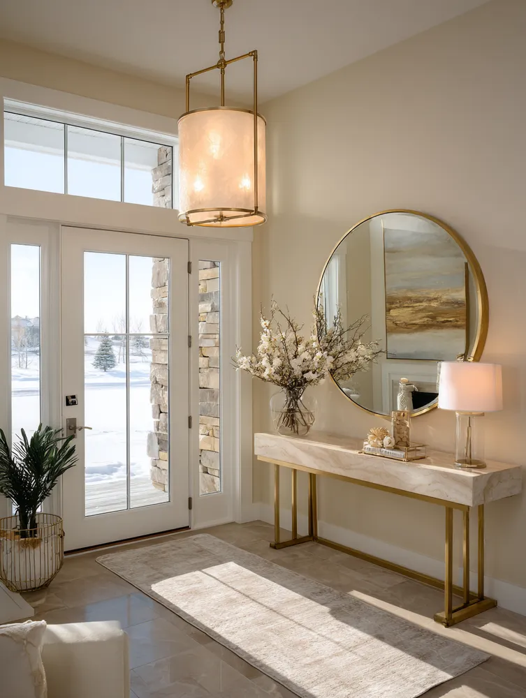Make a lasting first impression the moment guests step inside! Metal accents in your entryway can add instant polish and personality. Think a chic console table with metal legs, a sculptural metal mirror, or even a statement pendant light with metallic details. These touches create a sense of arrival and sophisticated design. Pair them with a simple runner and a touch of greenery for a warm welcome. How do you style your entryway? 🌿💡