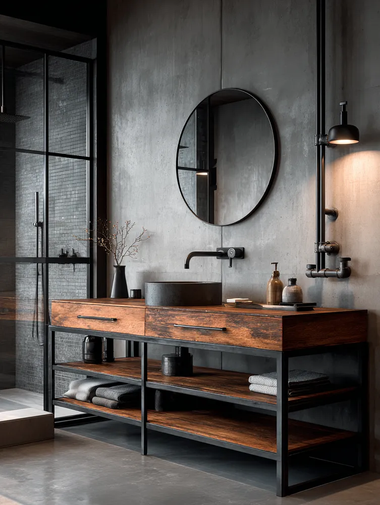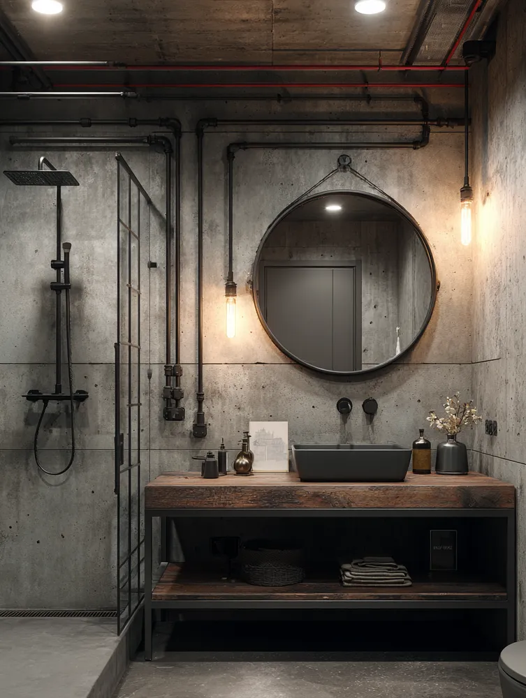 🛁 Industrial Bathroom Bliss: Raw Elegance