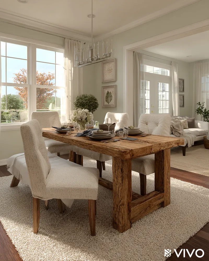 Redefining the farmhouse dining room involves elevating traditional elements with sophisticated touches. It’s about creating a space that’s both inviting for gatherings and aesthetically pleasing. 🌿 Consider these details: * **A Statement Chandelier:** Modern lines with rustic materials. * **Natural Wood Table:** With a subtly refined finish. * **Textured Chair Upholstery:** Adding comfort and visual interest. * **Table Setting with Earthy Tones:** Incorporating ceramic or linen accents. Every detail contributes to the atmosphere. Save for your next dining room inspiration! 🍽️