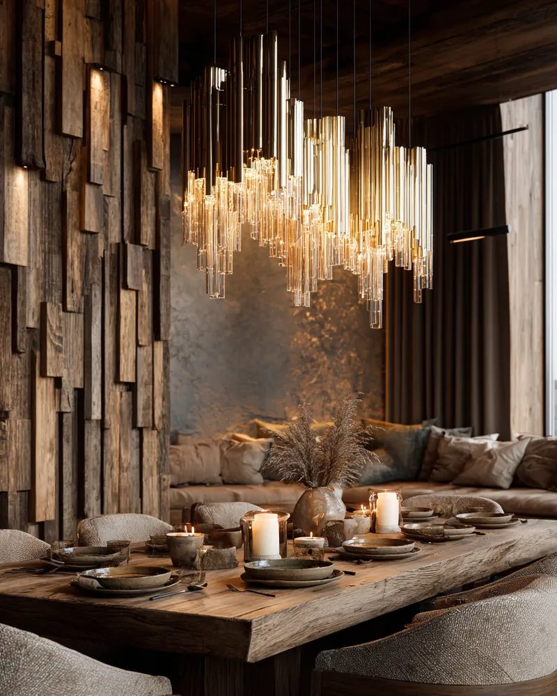 Elevate your dining experience with the dramatic elegance of chiaroscuro. Focus on the interplay of light and shadow through strategic lighting and contrasting colors. Think a dark, moody wall behind a brightly lit table, or artwork that plays with bold highlights and deep shadows. Achieve this with: - Statement pendant lights. - Dark wood furniture pieces. - Subtle reflective surfaces. This creates an atmosphere that is both intimate and visually stunning. Save this for your elegant entertaining inspiration! ✨