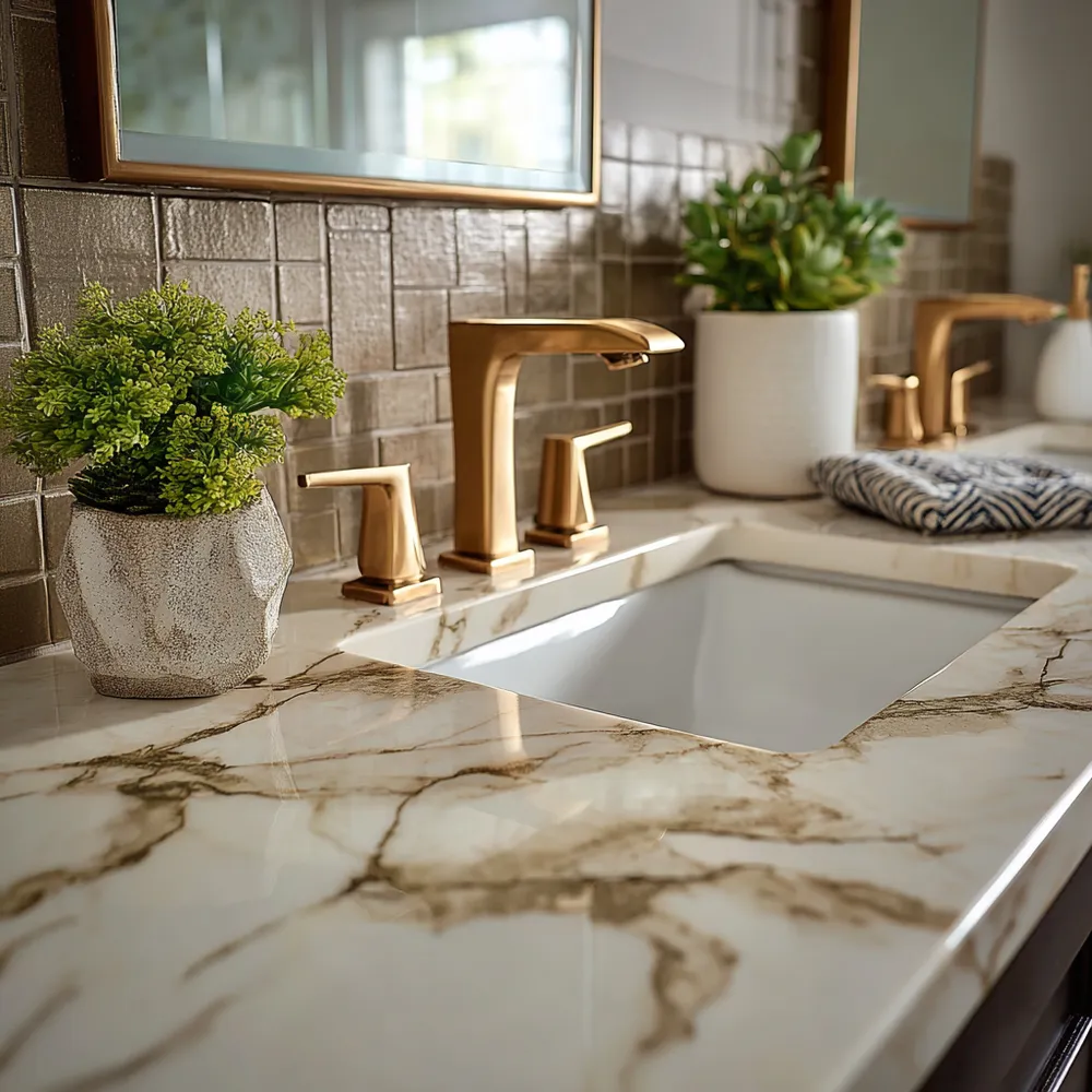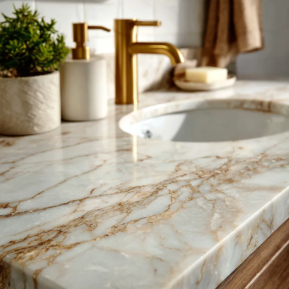Transform your bathroom into a spa-like sanctuary with the allure of marble! 🛁 Vanity tops made from marble add an instant touch of opulence and natural beauty. Whether you prefer the subtle grey veins of Carrara or the dramatic gold of Statuario, marble brings a sense of calm and sophistication. Think integrated sinks or sleek undermount designs for a seamless look. Keep it clean and well-sealed for enduring beauty. Your dream bathroom starts here! 💡