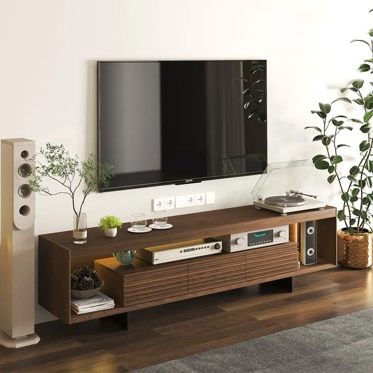 Transform your living room with a sleek walnut TV stand, featuring tv stands with mount brackets and a tv cabinet with doors that hides all your tech. This hybrid piece offers sturdy wall-mounted support + hidden storage—perfect for minimalist or mid-century vibes. 🔨🏠