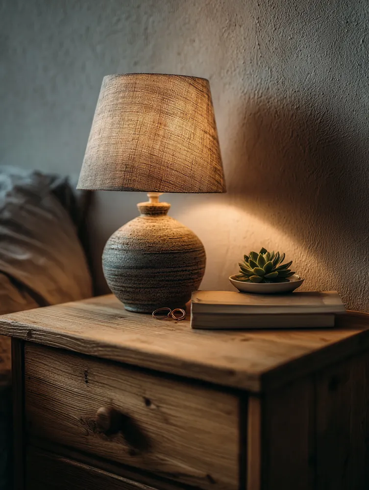 Your nightstand is a small but significant space for creating calm before sleep and ease upon waking. In a desert-inspired room, keep it simple and functional. A minimalist wooden nightstand or a small carved stool works beautifully. Adorn it with a warm-toned lamp, a favorite book, and perhaps a small succulent or a naturally scented candle. The goal is a serene, uncluttered surface that promotes rest. ✨ Nightstand Essentials: • Minimalist nightstand • Warm bedside lamp • Natural materials • A favorite book • Subtle green accents