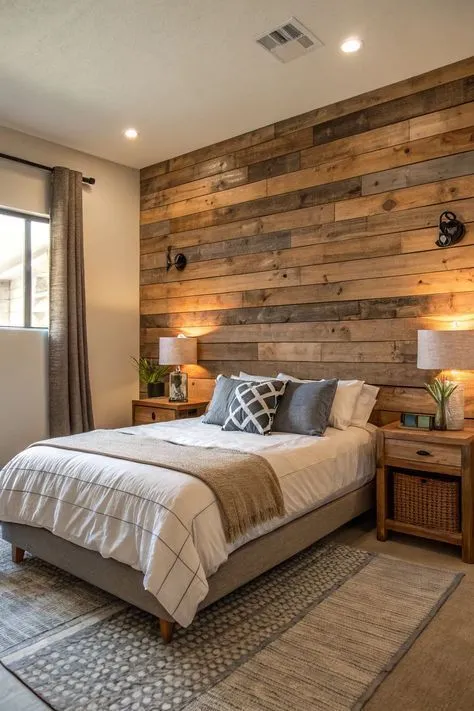 Rustic-Chic Shiplap Reveal: Cozy Bedroom Vibes 🛏️