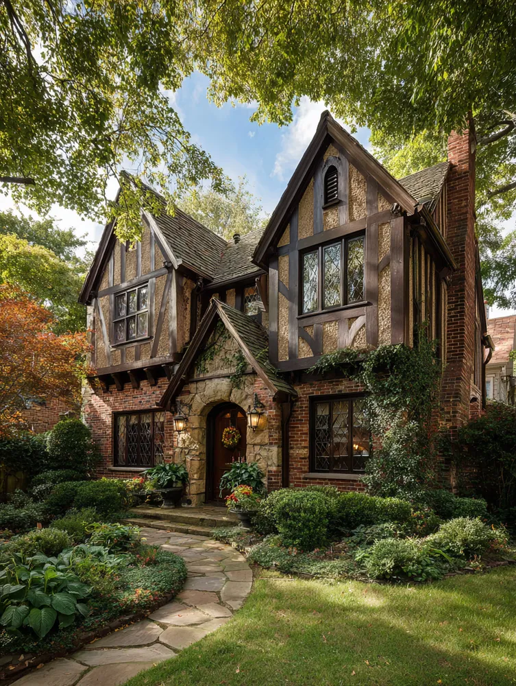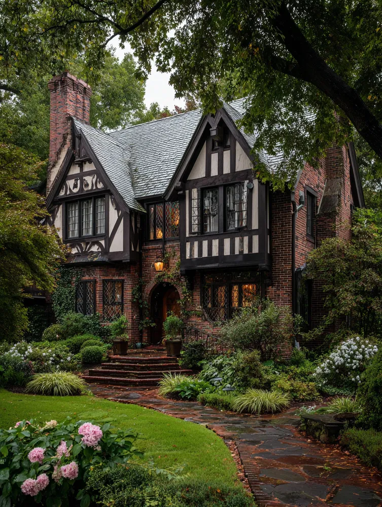 Step into a real-life storybook with the enchanting Tudor style house! Known for its distinctive and historic charm, this architectural style makes you feel like you've traveled back to old-world England. It's all about romantic, cozy, and dramatic details that create unforgettable curb appeal. The most iconic feature of a Tudor style house is its decorative half-timbering—those dark wood beams set against a light stucco or stone exterior. It creates a beautiful, graphic contrast that is instantly recognizable. You'll also notice steeply pitched roofs with multiple overlapping gables, which add to the home's towering, grand appearance. Another key element is the charming windows. Tudor homes often feature tall, narrow windows arranged in groups, with small diamond-shaped or rectangular panes of glass. Massive chimneys, often decorated with intricate brickwork, are also a staple, hinting at the cozy fireplaces waiting inside. If you love a home with character, history, and a touch of drama, the Tudor style is a perfect choice. It’s a timeless look that feels both grand and inviting.