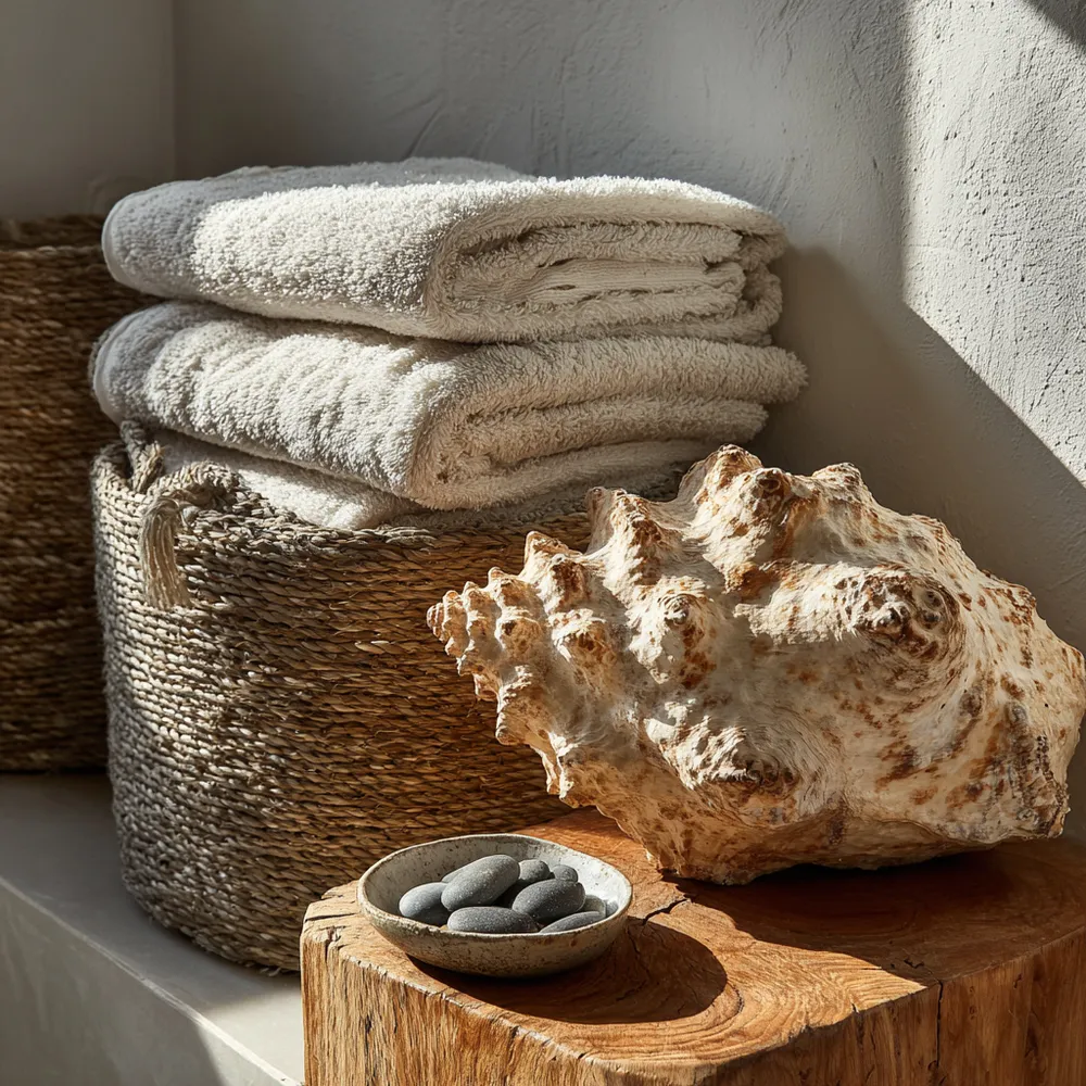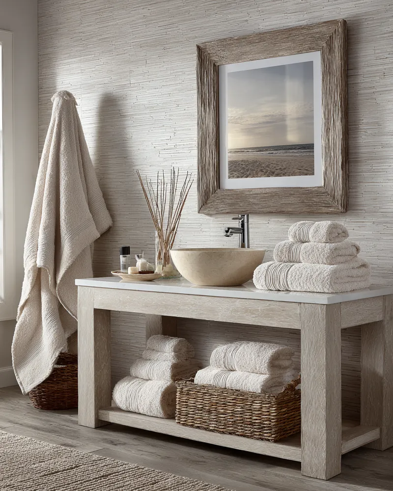 Tranquil Textures: Coastal Bathroom Details 🐚