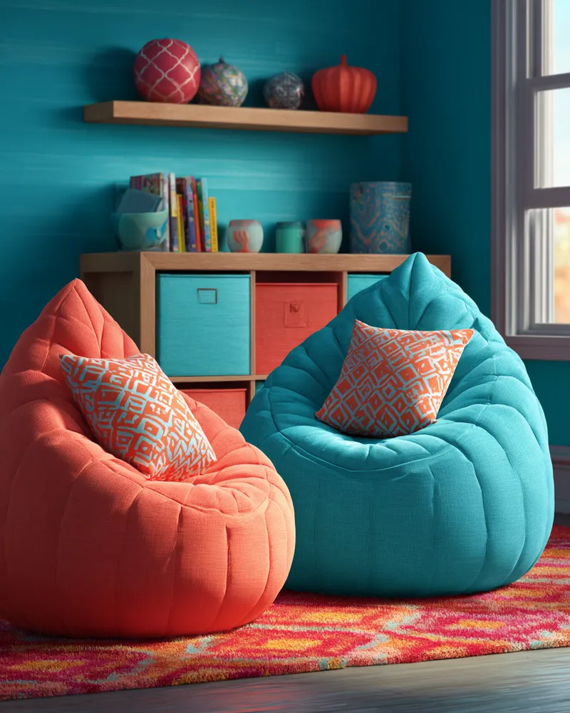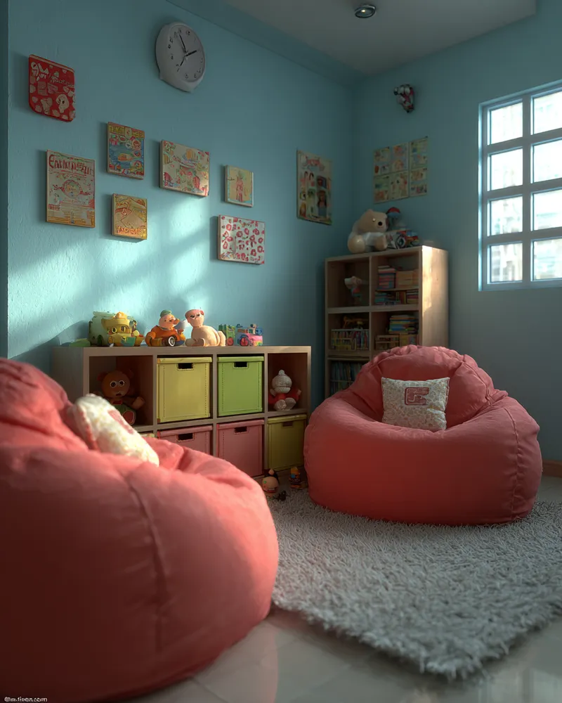 Joyful Contrast: Coral Pink & Teal Blue for a Lively Kid's Corner! 💖💙