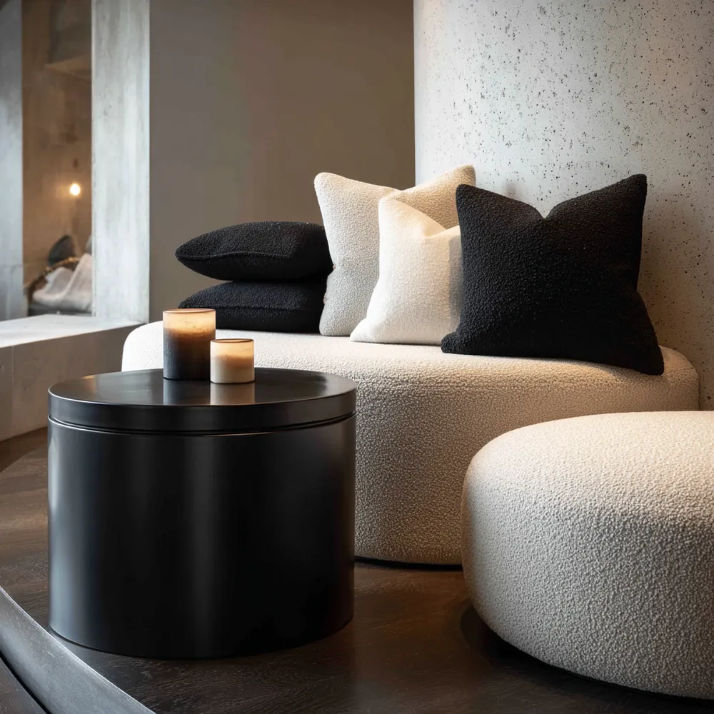 Monochromatic design is anything but one-dimensional when you play with texture! ⚫⚪ Explore how different materials can add depth, warmth, and visual interest to your black and white spaces. Think a smooth, high-gloss lacquered surface next to a soft, matte boucle fabric, or the rough, organic texture of concrete against the refined elegance of polished metal. This approach prevents your space from feeling flat and instead creates a rich, layered experience. Don't shy away from materials like linen, wool, wood grain, and even strategically placed concrete or stone. Elevate your monochrome! Save for your textural design journey! 🤍🖤